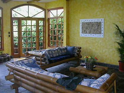 The Hotel Mimos is centrally located along the main road to Manuel Antonio, just minutes drive from both the beach/national park and the amenities of Quepos. Beautifully constructed with Spanish colonial and indigenous themes, the hotel was built to maximize rental versatility. It in fact consists of two properties-- the main hotel and a luxury vacation rental home, which can be integrated or separated depending on necessity. The main hotel is comprised of 12 rooms: 4 standard, 6 junior suites, and one apartment with 2 bedrooms, all of which have private baths. There is a fantastic, Italian restaurant on the premeses, located adjacent to the pool, with a capacity to seat up to 80 people. In addition, the hotel offers cable TV, air conditioning and ceiling fans, private parking, a jacuzzi, central gas, a 10,000 liter reserve water tank, garden area, 24 hour security and tour booking service.