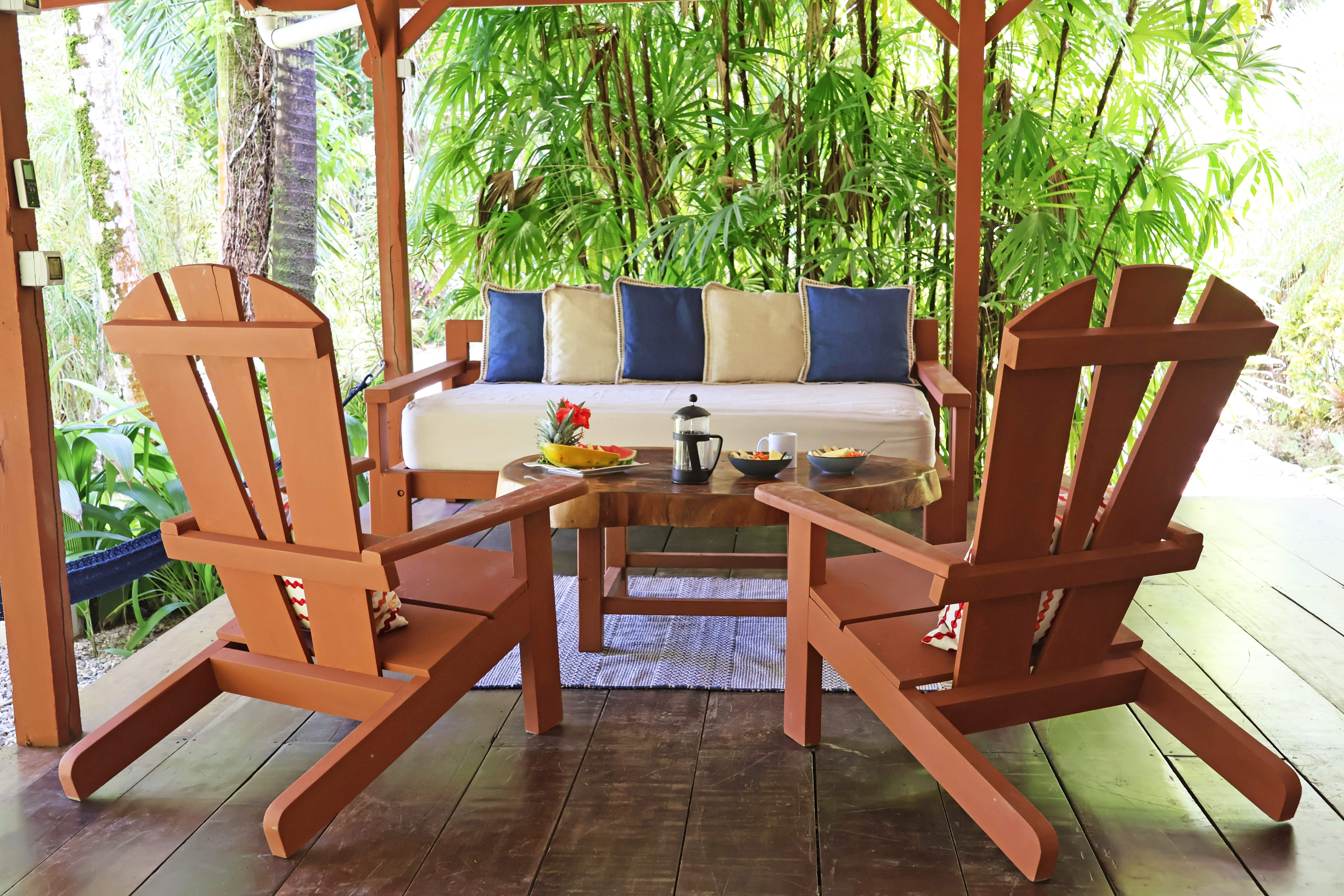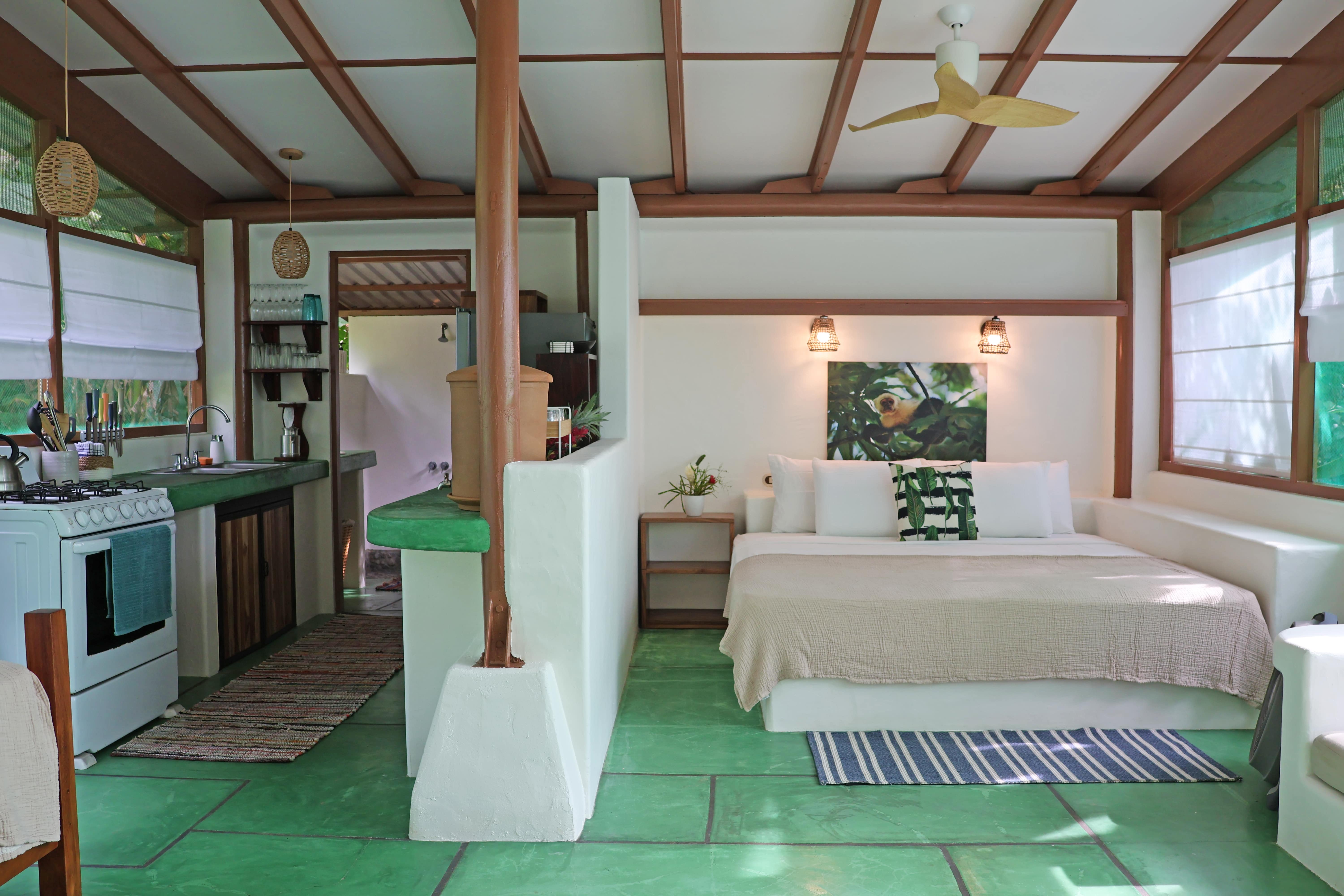 3 studio cabins each equipped with a kitchen, full bathroom, and patio. The cabins are located throughout the property and tucked into the lush landscape creating a sense of privacy.