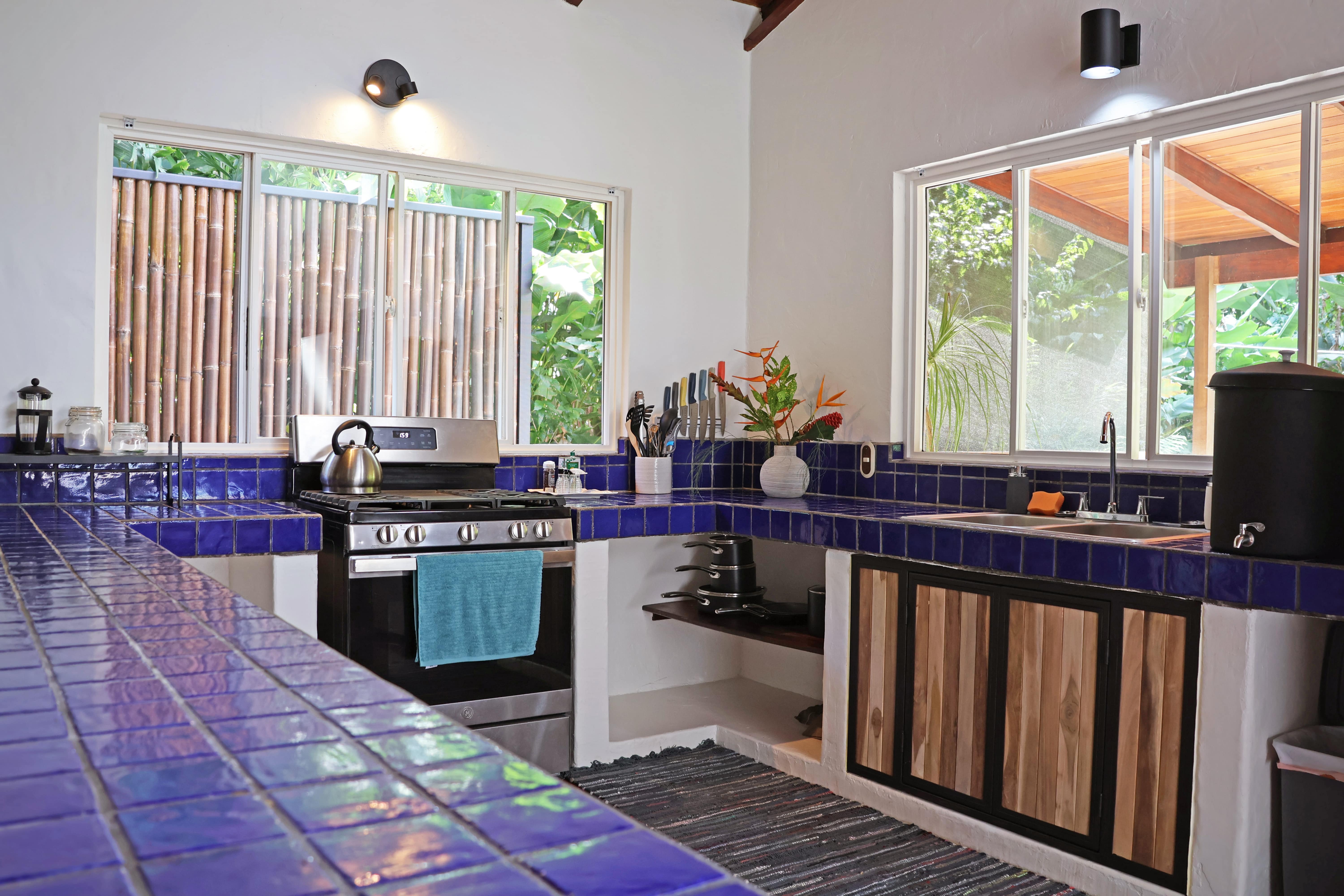 The main home features an open floor plan with spacious kitchen and living area. It contains 3 bedrooms and a large bathroom with outdoor shower and soaking tub. Concrete construction with high ceilings provides airflow offering a cool comfortable space to enjoy.