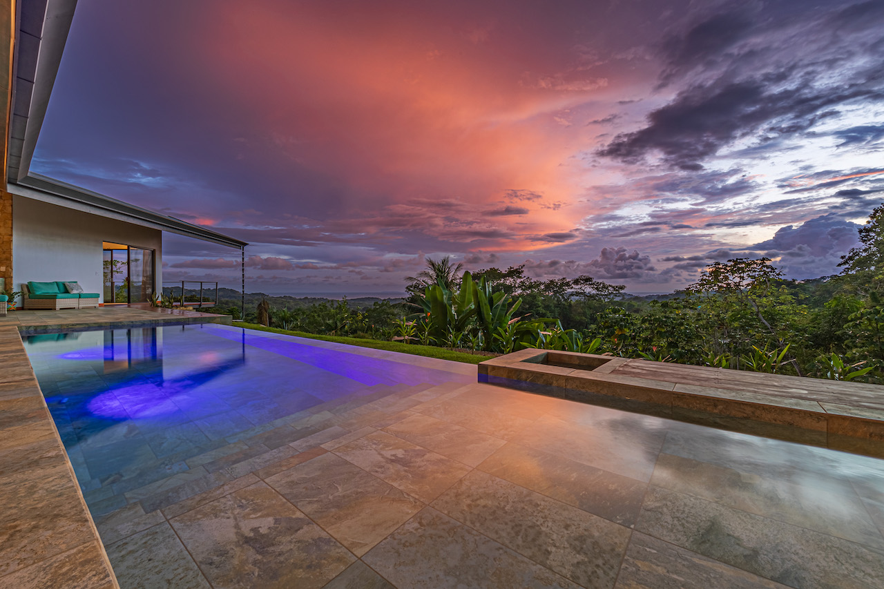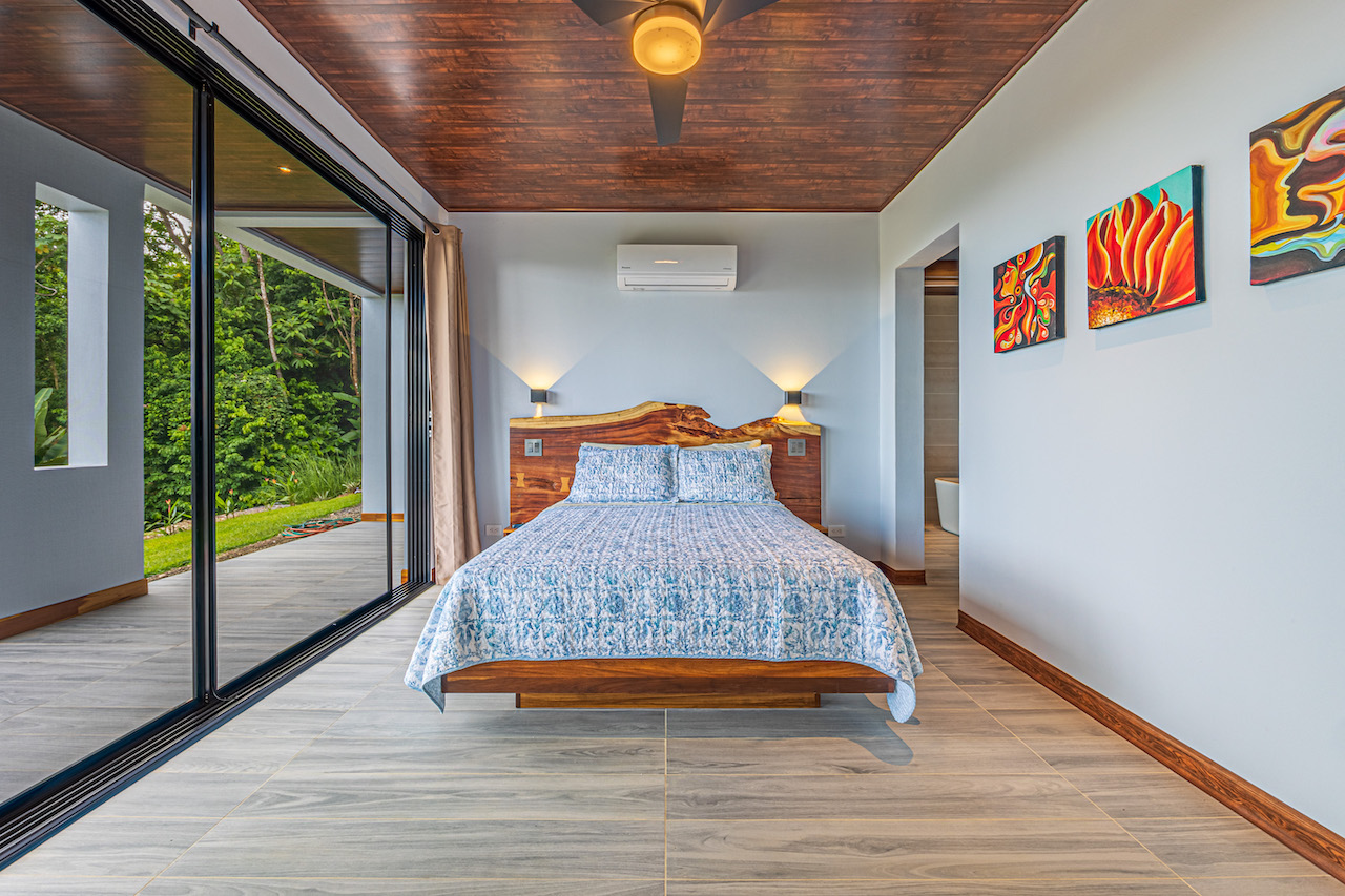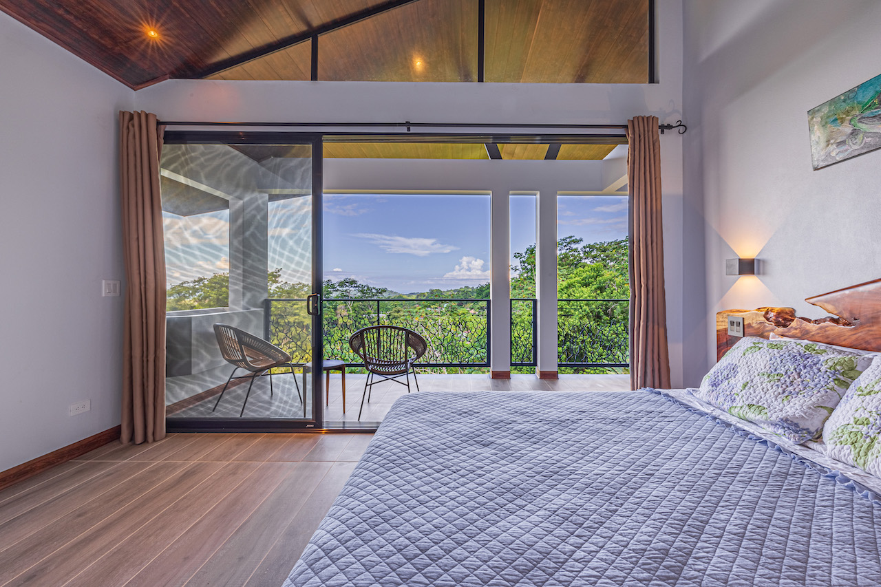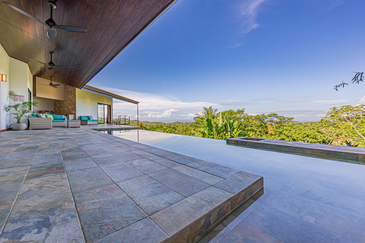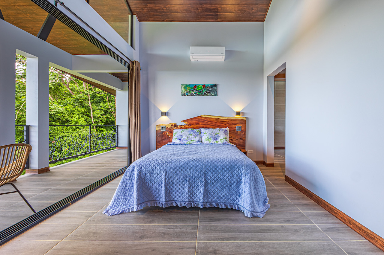 The entry to the home is magnificent featuring custom iron work fences and a perfectly planted back yard oasis. The roof is such that it allows for one to stay dry whether you are coming in with groceries or enjoying the back patio. Enter through the oversized laurel front door equipped with key pad to the homes entertaining delight. Large open concept with artesian guanacaste furniture, a large chefs kitchen featuring custom cabintry with an oversized granite island and counter tops. Enjoy the ability to fully open the accordion window above the sink to bring in those wonderful breezes. Hand crafted teak kitchen cabinets and wall decor are just a few features of this wonderful space. Conveniently located half bath is in easy access for entertaining featuring a guanacaste vanity. The gorgeous vanishing edge pool and decking that has been incorporated in the home is stunning. Simply unique and a show stopper! The outdoor bbq area with seating is sure to be one the the main areas one will enjoy daily. The home features three master bedrooms all with ensuites but the main principal bath an Integrated Bidet by Homary. The little things that can an owner can really enjoy. The guest master bedrooms feature large terraces, walk in closets and the ability to make the walk in shower inside or outside with a slide of a door. One features and soaking tub. Everything has been thought of! Planting for future abundance one will find two avocados trees- one Haas, one Fuerte, lemon tree, lime tree, mandarina, dwarf coconut and large coconuts. Ylang ylang, mimosa, lorita, rosemary and cilantro.