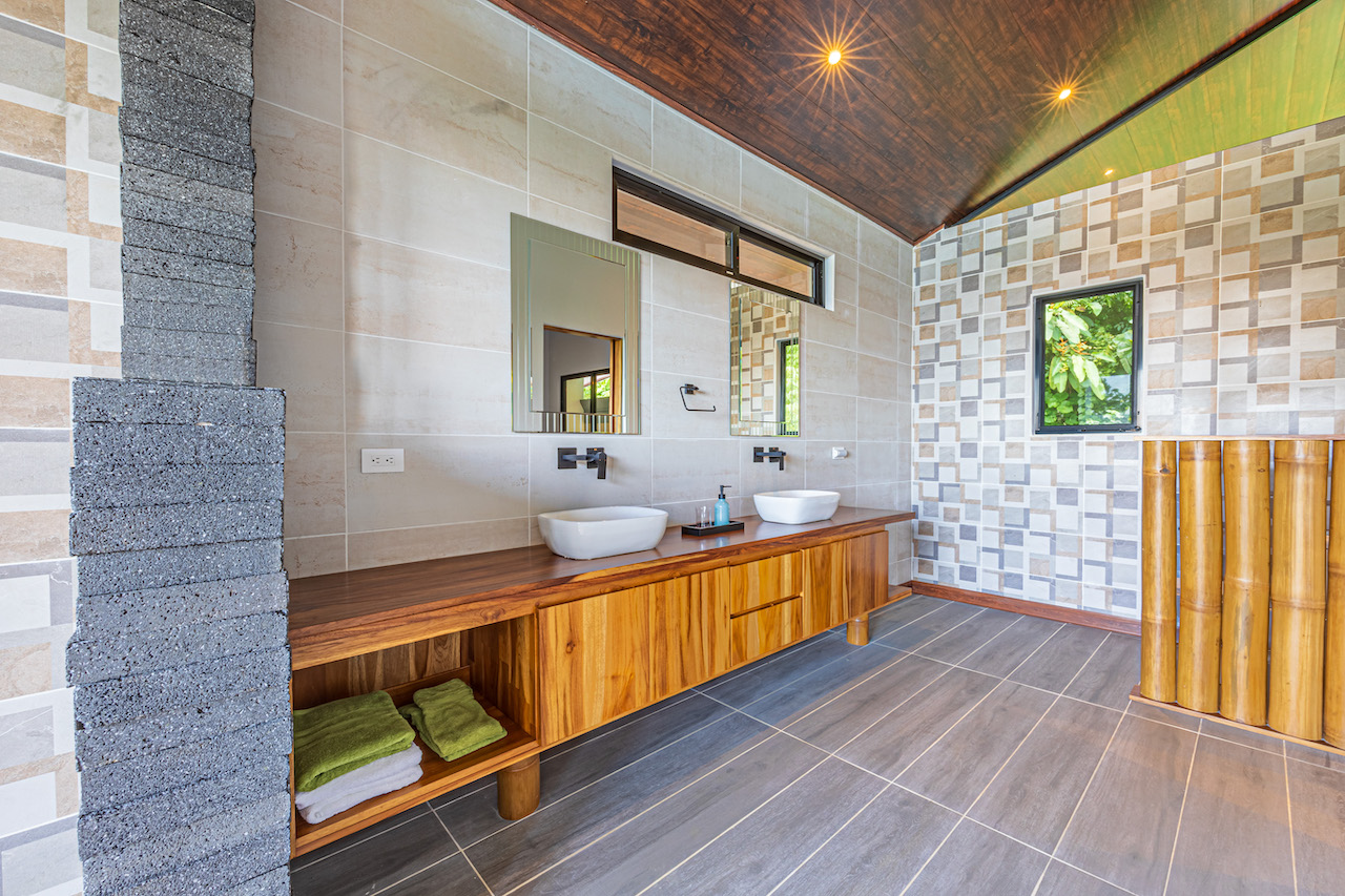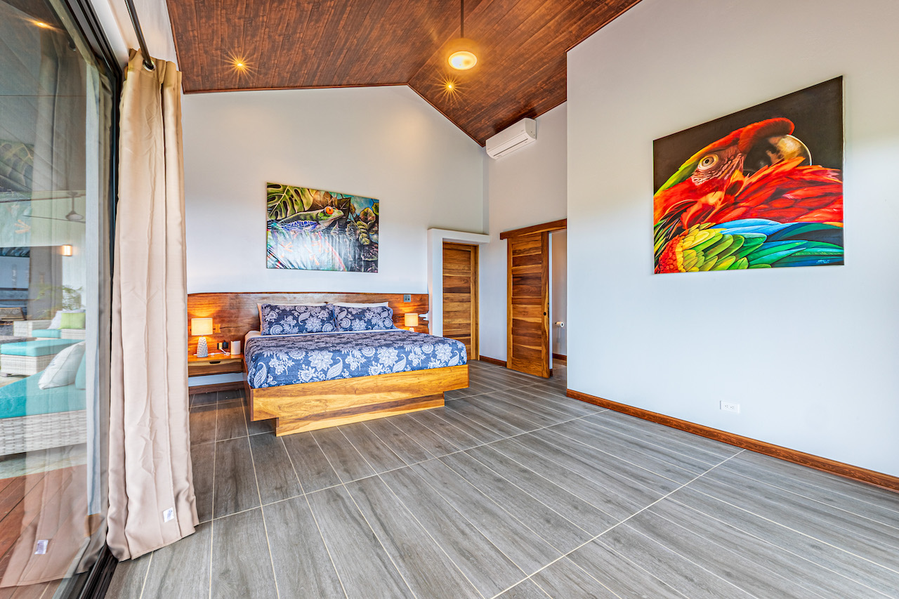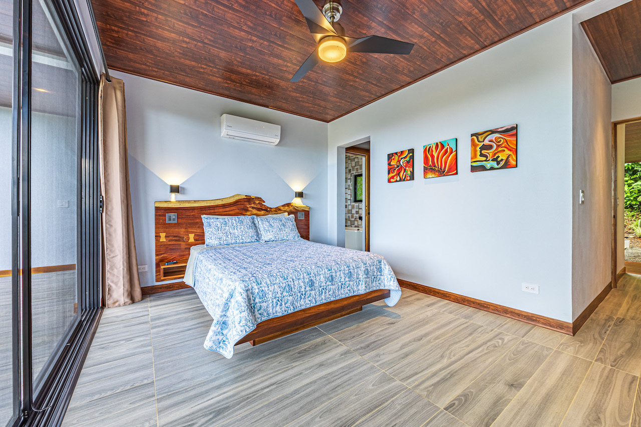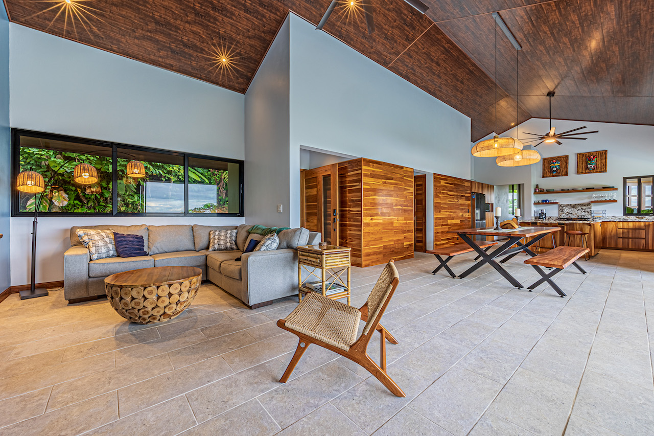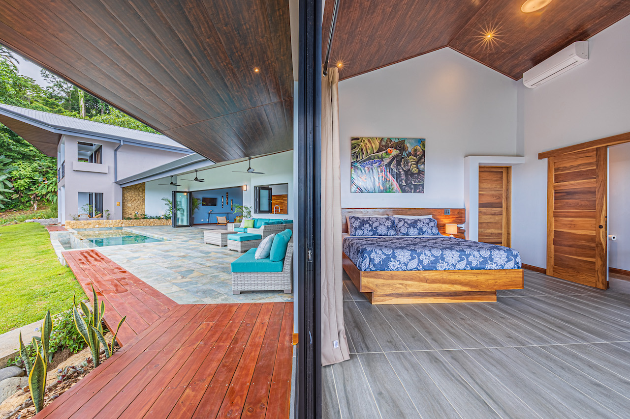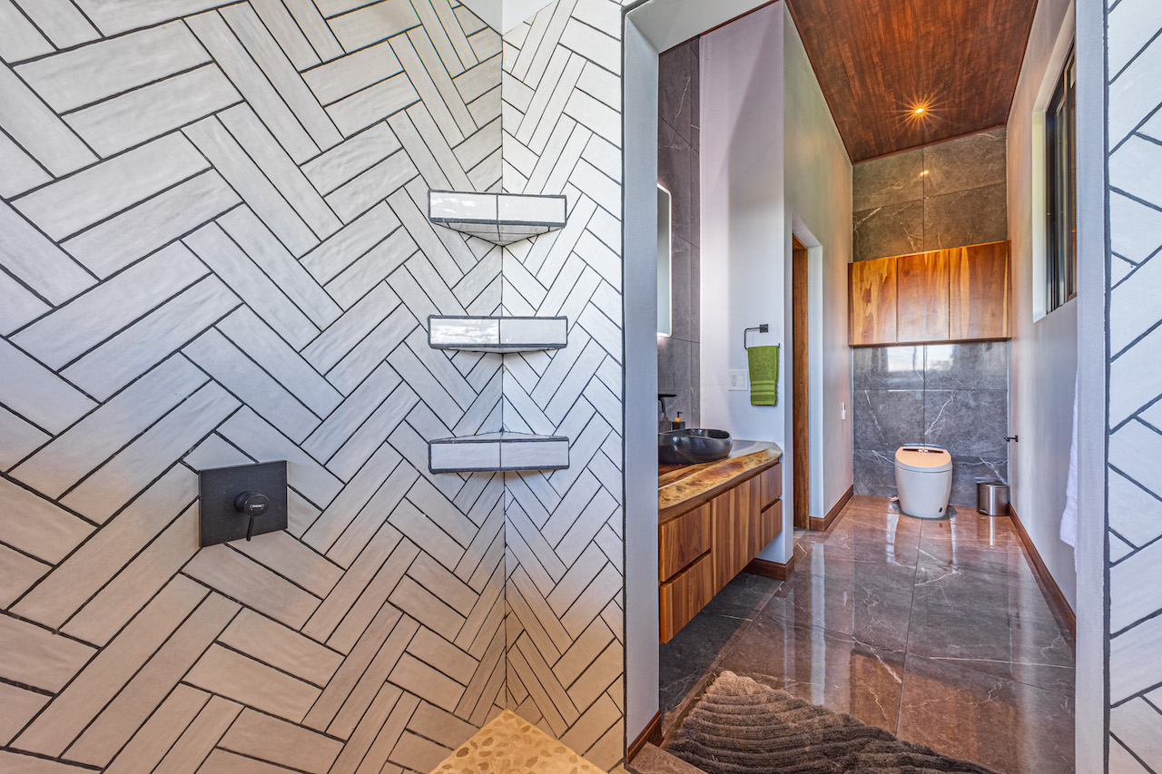 The entry to the home is magnificent featuring custom iron work fences and a perfectly planted back yard oasis. The roof is such that it allows for one to stay dry whether you are coming in with groceries or enjoying the back patio. Enter through the oversized laurel front door equipped with key pad to the homes entertaining delight. Large open concept with artesian guanacaste furniture, a large chefs kitchen featuring custom cabintry with an oversized granite island and counter tops. Enjoy the ability to fully open the accordion window above the sink to bring in those wonderful breezes. Hand crafted teak kitchen cabinets and wall decor are just a few features of this wonderful space. Conveniently located half bath is in easy access for entertaining featuring a guanacaste vanity. The gorgeous vanishing edge pool and decking that has been incorporated in the home is stunning. Simply unique and a show stopper! The outdoor bbq area with seating is sure to be one the the main areas one will enjoy daily. The home features three master bedrooms all with ensuites but the main principal bath an Integrated Bidet by Homary. The little things that can an owner can really enjoy. The guest master bedrooms feature large terraces, walk in closets and the ability to make the walk in shower inside or outside with a slide of a door. One features and soaking tub. Everything has been thought of! Planting for future abundance one will find two avocados trees- one Haas, one Fuerte, lemon tree, lime tree, mandarina, dwarf coconut and large coconuts. Ylang ylang, mimosa, lorita, rosemary and cilantro.