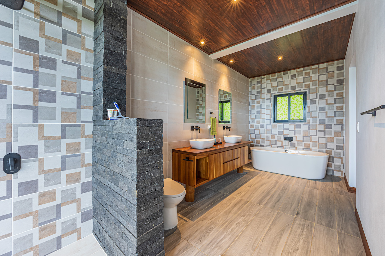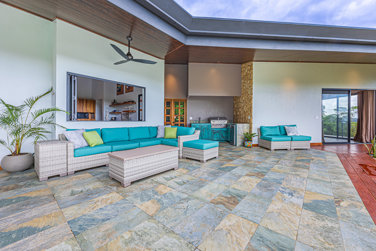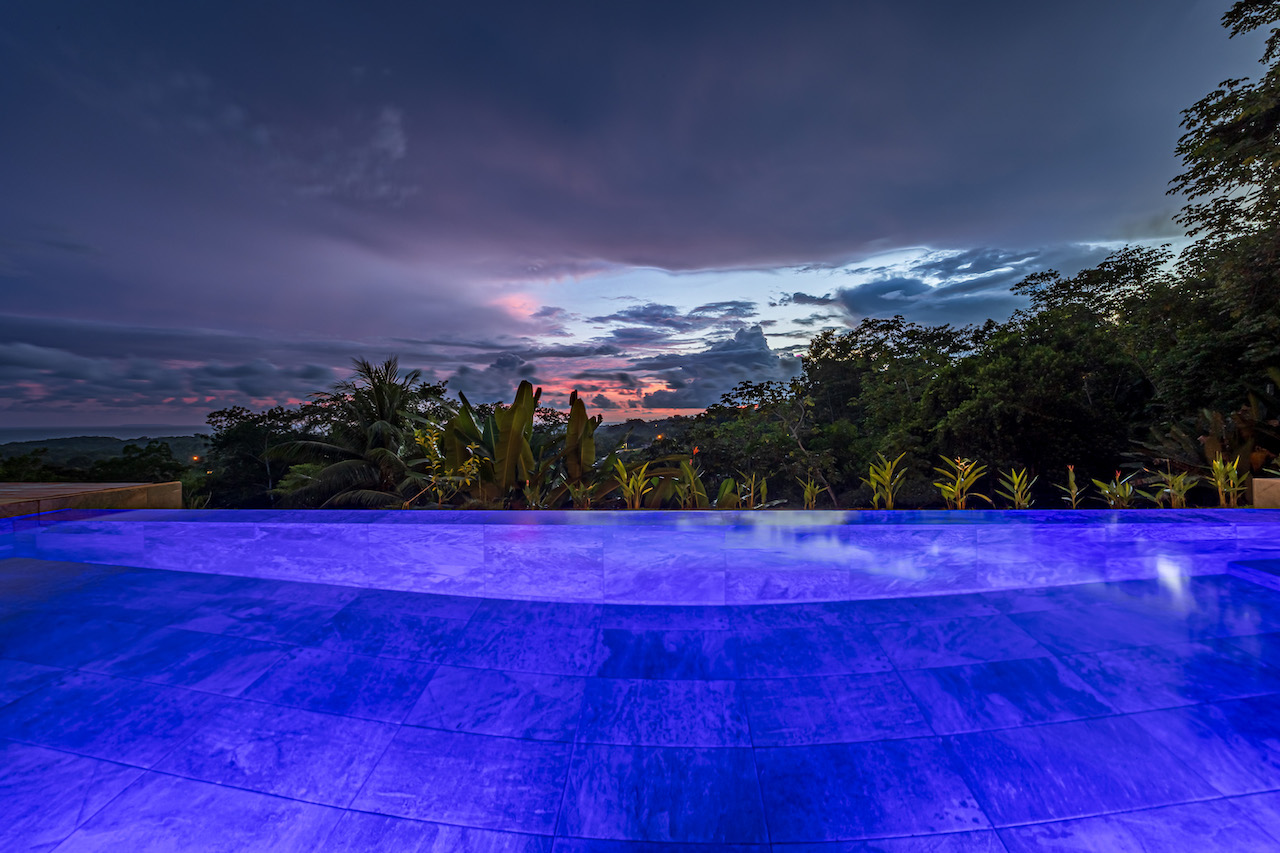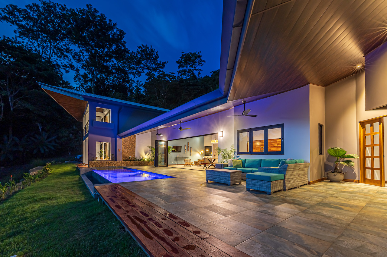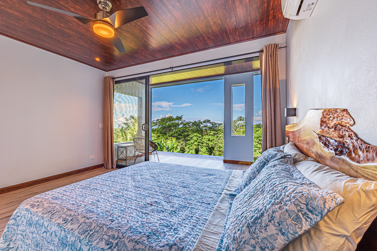 The entry to the home is magnificent featuring custom iron work fences and a perfectly planted back yard oasis. The roof is such that it allows for one to stay dry whether you are coming in with groceries or enjoying the back patio. Enter through the oversized laurel front door equipped with key pad to the homes entertaining delight. Large open concept with artesian guanacaste furniture, a large chefs kitchen featuring custom cabintry with an oversized granite island and counter tops. Enjoy the ability to fully open the accordion window above the sink to bring in those wonderful breezes. Hand crafted teak kitchen cabinets and wall decor are just a few features of this wonderful space. Conveniently located half bath is in easy access for entertaining featuring a guanacaste vanity. The gorgeous vanishing edge pool and decking that has been incorporated in the home is stunning. Simply unique and a show stopper! The outdoor bbq area with seating is sure to be one the the main areas one will enjoy daily. The home features three master bedrooms all with ensuites but the main principal bath an Integrated Bidet by Homary. The little things that can an owner can really enjoy. The guest master bedrooms feature large terraces, walk in closets and the ability to make the walk in shower inside or outside with a slide of a door. One features and soaking tub. Everything has been thought of! Planting for future abundance one will find two avocados trees- one Haas, one Fuerte, lemon tree, lime tree, mandarina, dwarf coconut and large coconuts. Ylang ylang, mimosa, lorita, rosemary and cilantro.