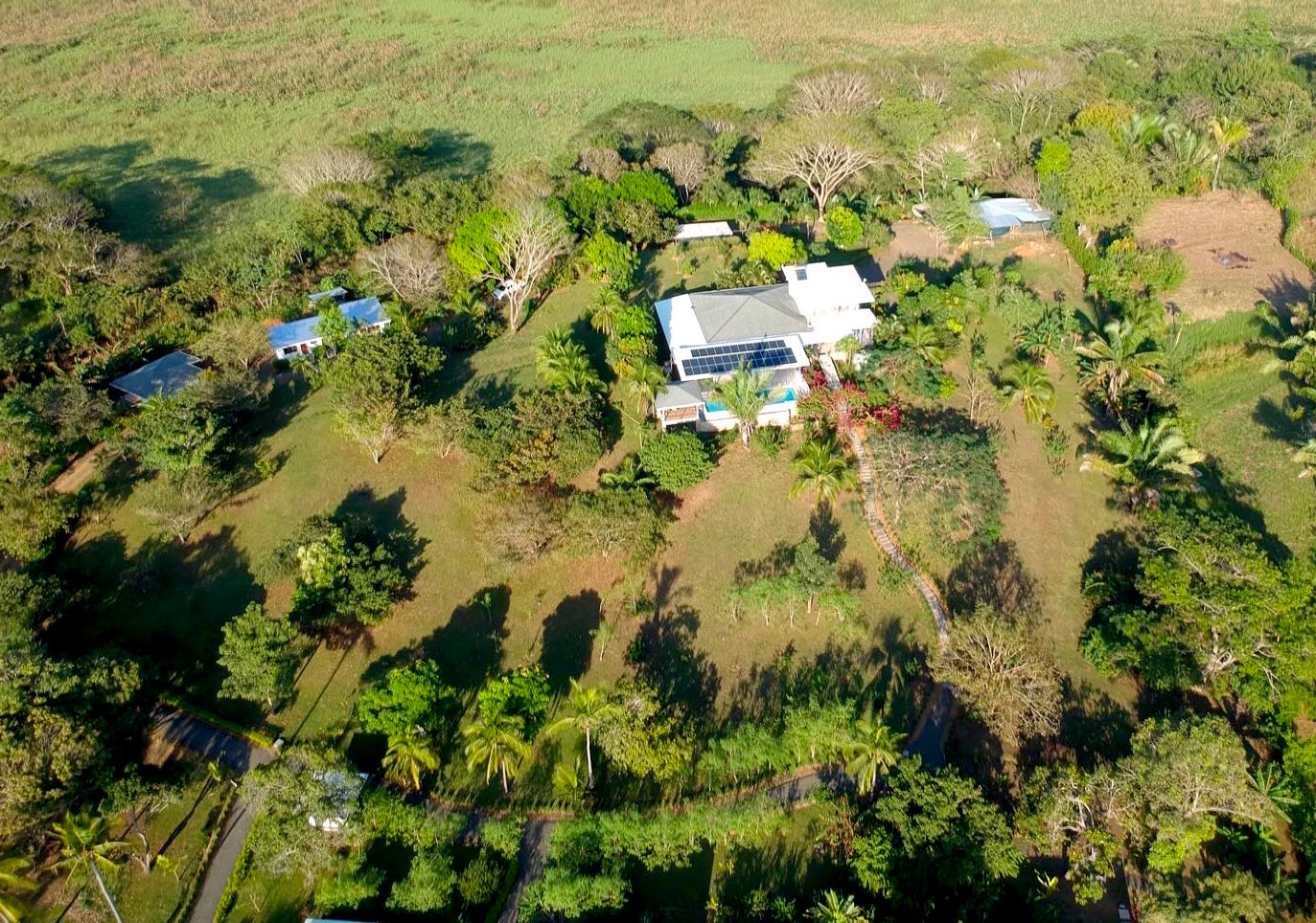 Located on 2.5 acres, this 8,500 sq-ft resort features five different bungalows of 2 rooms apiece, totaling 10 bedrooms and bathrooms. There are currently 26 beds total in the resort. It features 6 Quad rooms with one Queen Bed and 2 full-length single beds and four Double rooms, which can be customized with one King bed or two full-length single beds.