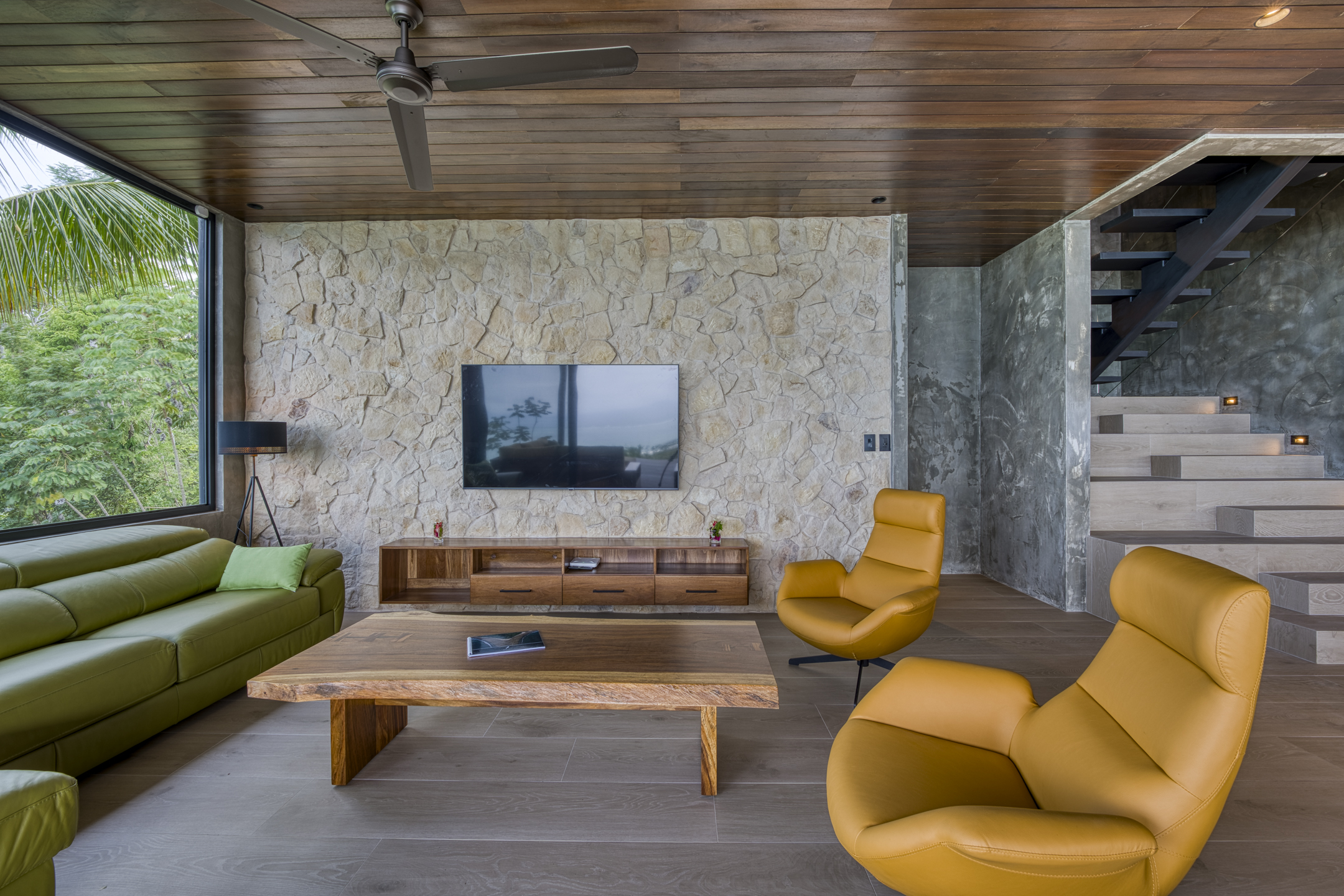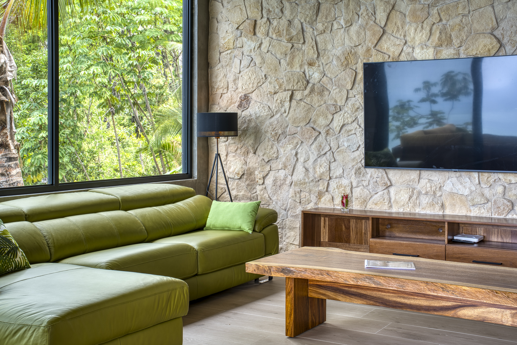 The living area of Hermosa Retreat is a testament to tropical elegance. It opens up to a sprawling outdoor terrace adorned with comfortable sofas and a hammock, creating an idyllic setting for relaxation amidst the tranquil beauty of nature. This terrace serves as a peaceful sanctuary, perfect for yoga enthusiasts and those seeking a quiet place for meditation.