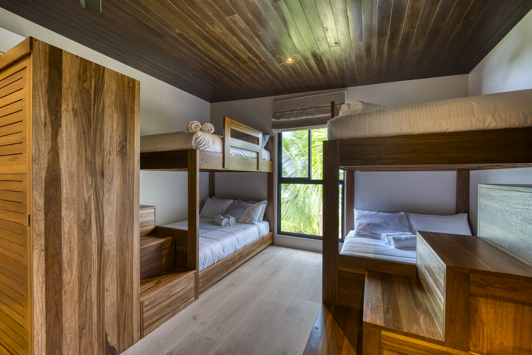 This exceptional villa features four generously sized bedrooms tailored for comfort and privacy. Three of these bedrooms are furnished with king-size beds and boast their own ensuite bathrooms, offering a private haven for relaxation. The fourth bedroom is creatively arranged with two double Queen-size beds, making it an ideal space for additional guests or children.