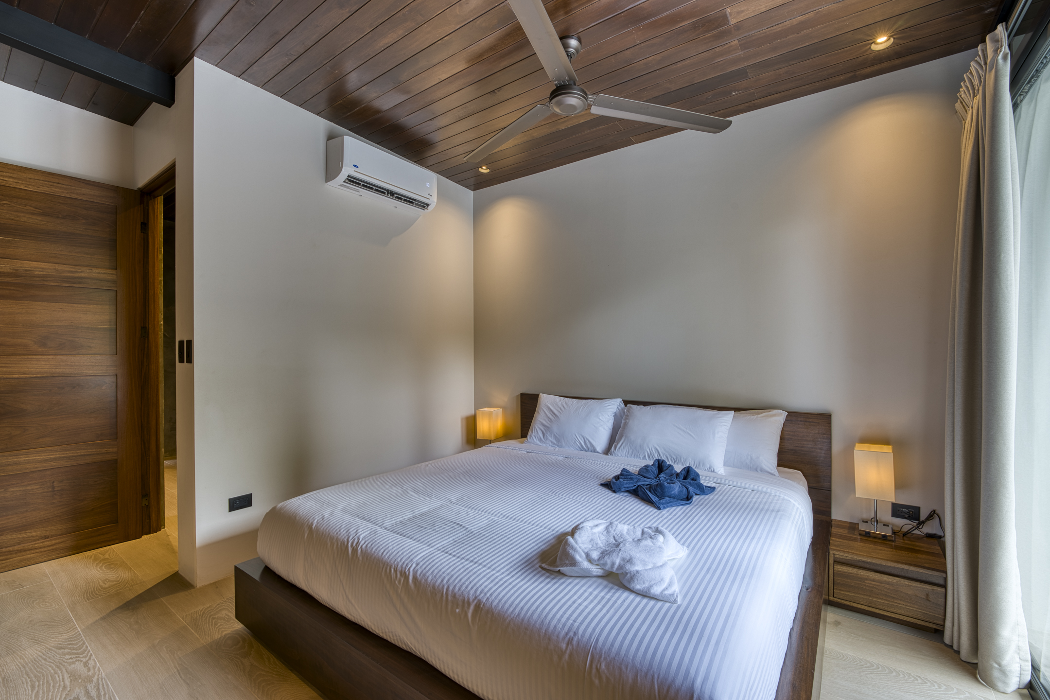 For leisure and refreshment, the villa presents a stunning infinity pool, ideal for cooling off during the warm tropical afternoons. The residence is not only about comfort but also ensures convenience and connectivity, featuring state-of-the-art amenities such as air conditioning throughout and high-speed fiber internet with speeds up to 100Mbps.
