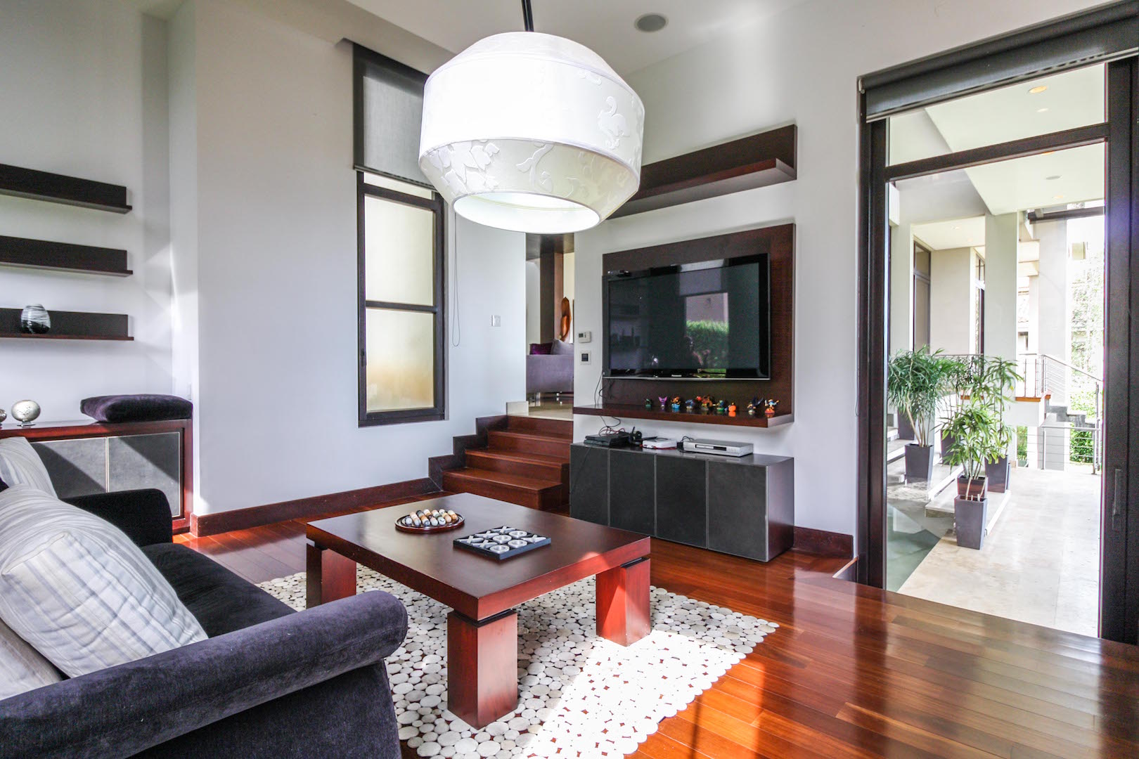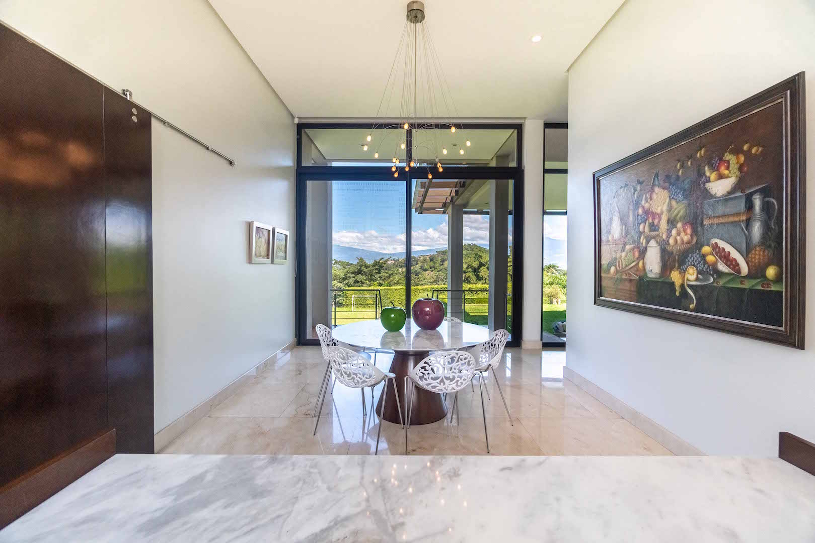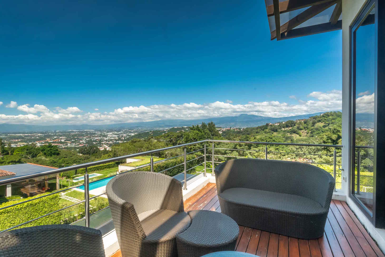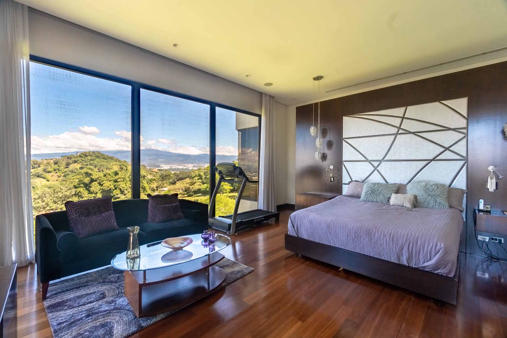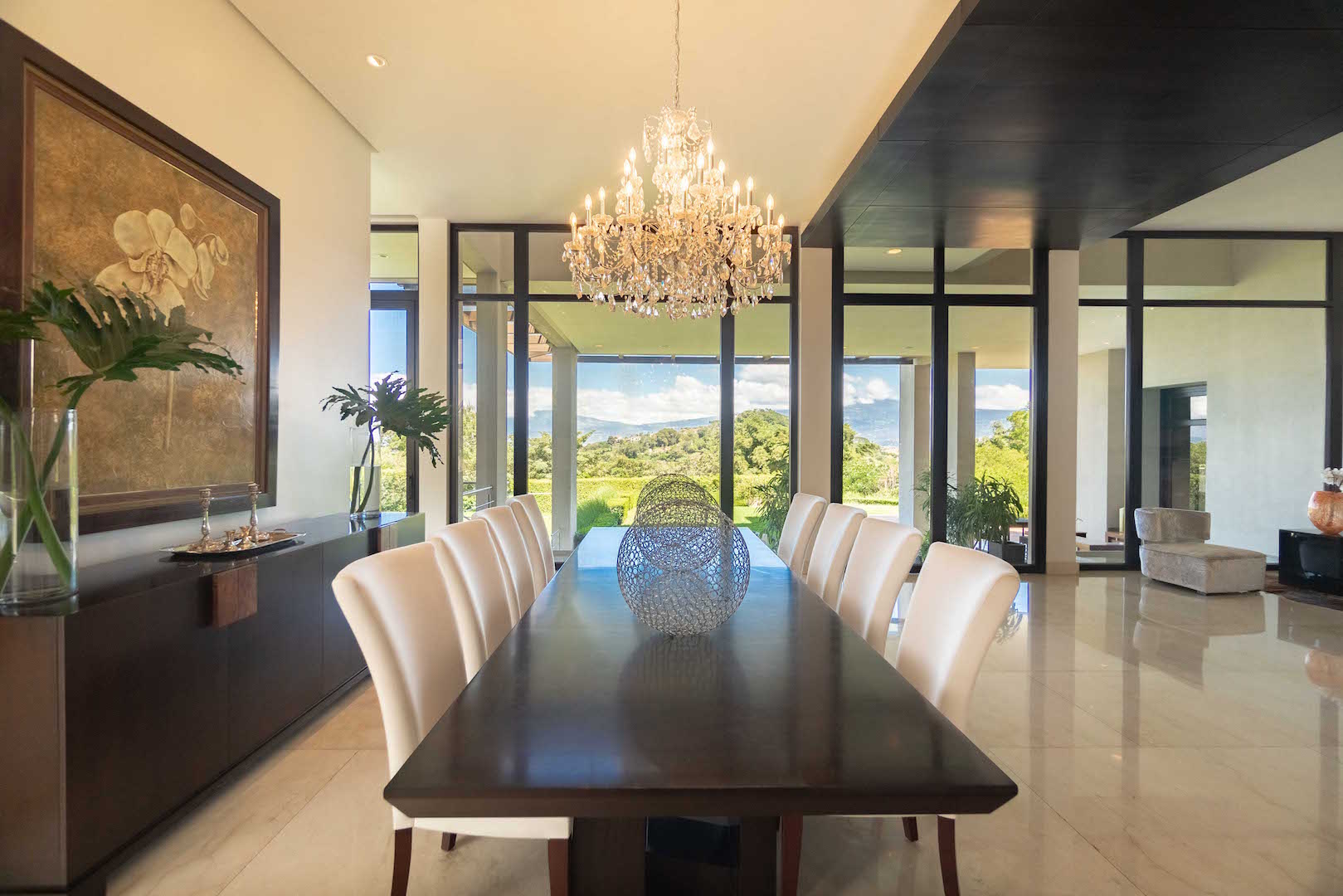 This modern and elegant Santa Ana luxury home provides the perfect living space for family and guests, with exceptional attention to detail in its interior design, and its proximity to the best commercial facilities, first-class restaurants, schools, amenities, and leisure. Interior design with numerous attractive accents, including the roof to floor windows, double and triple height ceilings and marble floors throughout the social areas. Located in one of the most private and exclusive gated communities of Santa Ana, the property enjoys 24-hour security all year round. \n\nA gigantic double entrance door opens to the triple height lobby with sitting area and an ample guest bathroom. \n\nThe expansive living room and dining room areas open to the terrace and gardens, offering panoramic views of the mountain range and the Central Valley down below, for a lifestyle of exquisite luxury.\n\nThe first floor is complemented by a nice and modern kitchen with top of the line appliances, private family dining area, and deck, giving direct access to the ample terrace area with BBQ area. On the main floor, there is also a TV room and the maid`s quarters with two bedrooms and one bathroom. \n\nThe lower floor is made of the guest apartment, storage areas, laundry room and garage for three cars. \n\nThe upper floor of this dramatic home has a very large family room with an office. A luxurious master suite with its private balcony to admire the views, complemented by the beautiful bathroom enhanced by the Jacuzzi, double vanity and double walk-in closet. Two bedrooms, each one with a bathroom and a guest bedroom with its bathroom, make this a perfect home for a large family or a couple that likes entertaining.