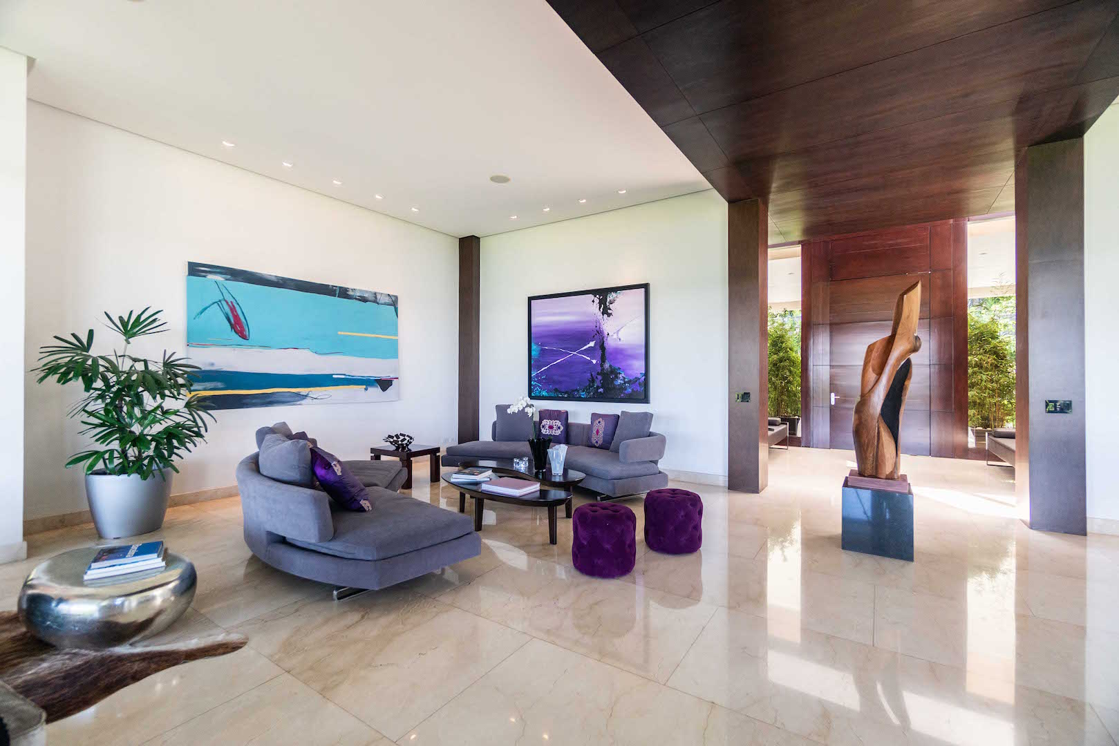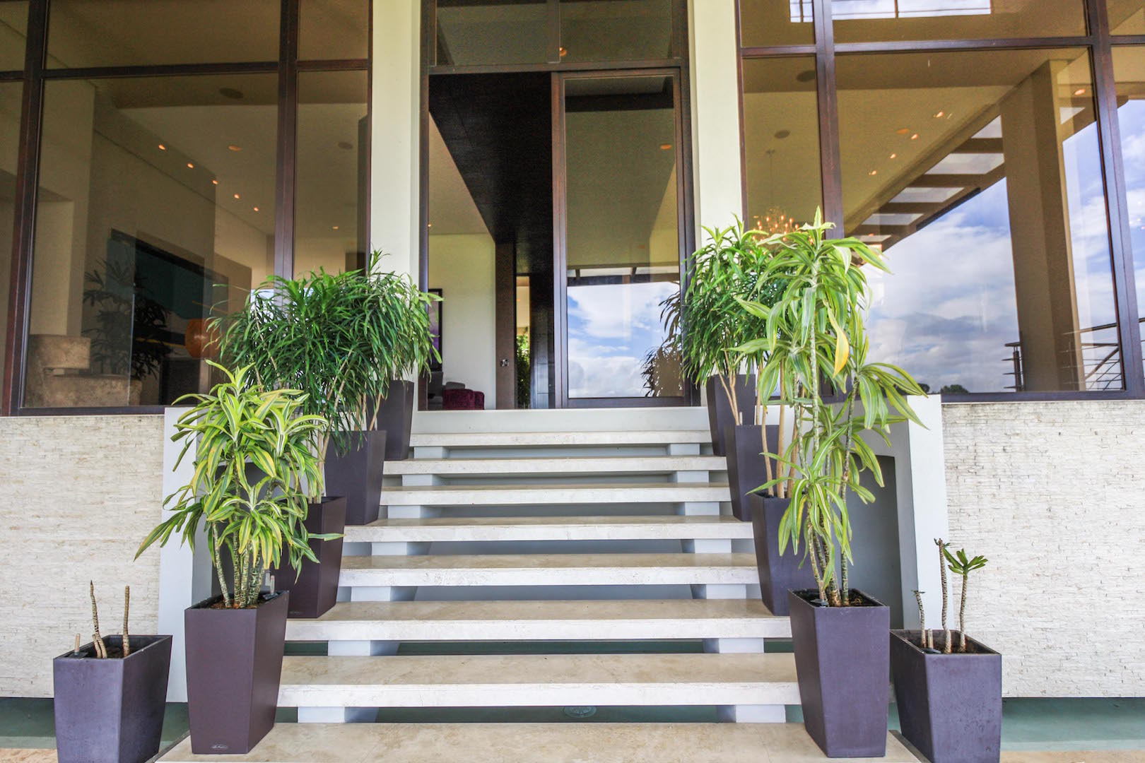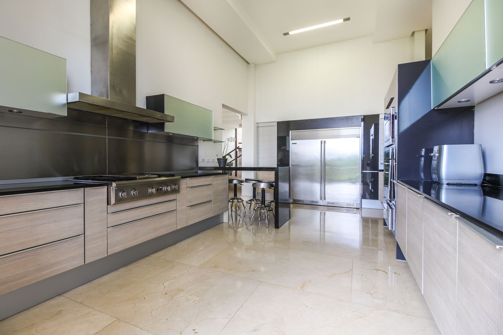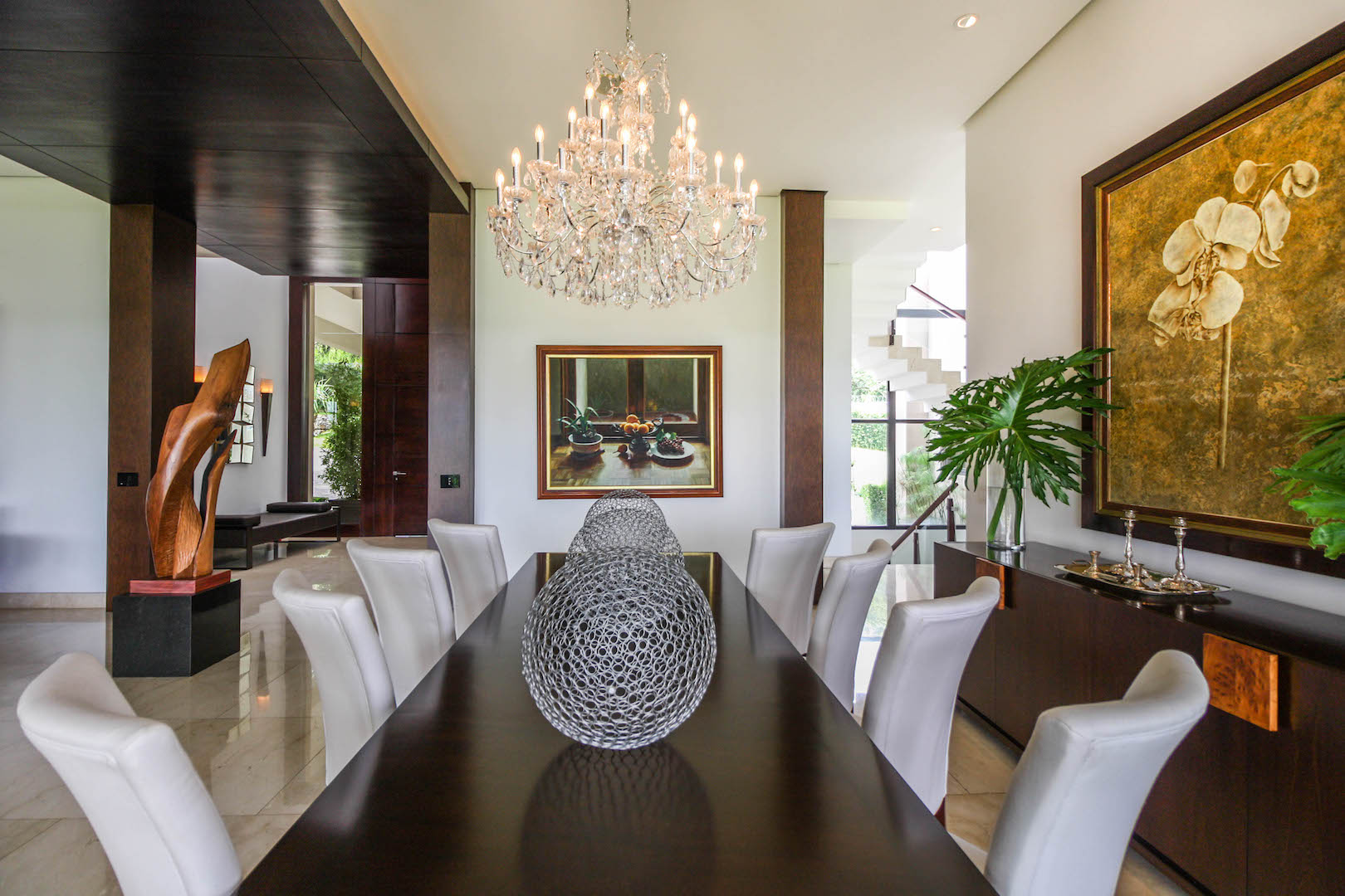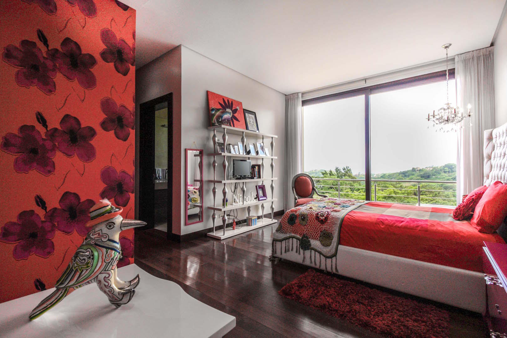 This modern and elegant Santa Ana luxury home provides the perfect living space for family and guests, with exceptional attention to detail in its interior design, and its proximity to the best commercial facilities, first-class restaurants, schools, amenities, and leisure. Interior design with numerous attractive accents, including the roof to floor windows, double and triple height ceilings and marble floors throughout the social areas. Located in one of the most private and exclusive gated communities of Santa Ana, the property enjoys 24-hour security all year round. \n\nA gigantic double entrance door opens to the triple height lobby with sitting area and an ample guest bathroom. \n\nThe expansive living room and dining room areas open to the terrace and gardens, offering panoramic views of the mountain range and the Central Valley down below, for a lifestyle of exquisite luxury.\n\nThe first floor is complemented by a nice and modern kitchen with top of the line appliances, private family dining area, and deck, giving direct access to the ample terrace area with BBQ area. On the main floor, there is also a TV room and the maid`s quarters with two bedrooms and one bathroom. \n\nThe lower floor is made of the guest apartment, storage areas, laundry room and garage for three cars. \n\nThe upper floor of this dramatic home has a very large family room with an office. A luxurious master suite with its private balcony to admire the views, complemented by the beautiful bathroom enhanced by the Jacuzzi, double vanity and double walk-in closet. Two bedrooms, each one with a bathroom and a guest bedroom with its bathroom, make this a perfect home for a large family or a couple that likes entertaining.