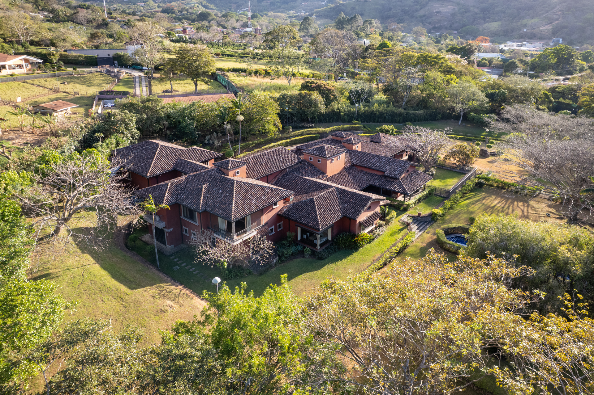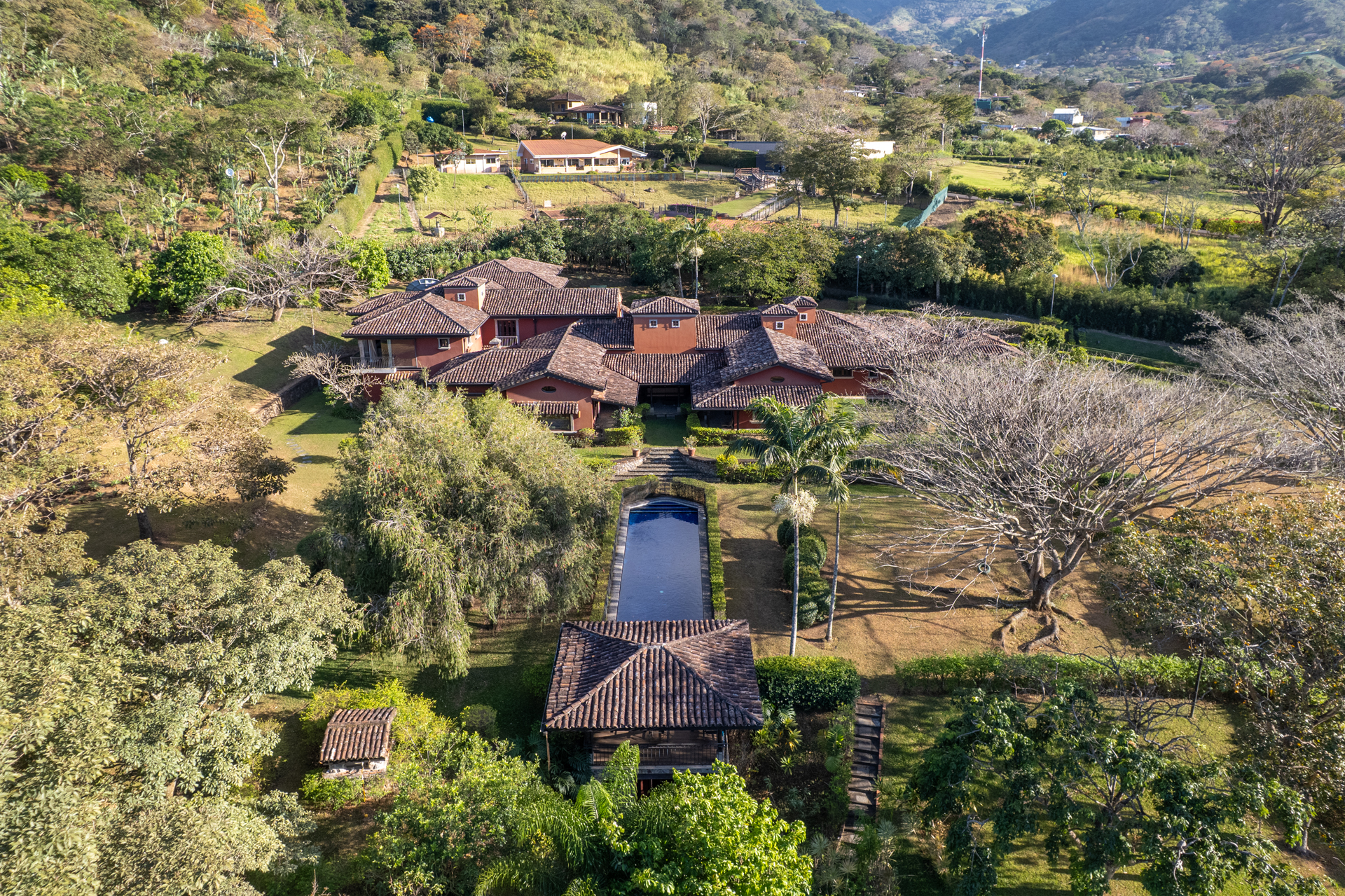 Tucked away in the hills of Santa Ana, Villa Artesana is a distinguished hacienda-style residence offering the perfect balance of refined architecture, privacy, and convenience. Set on an expansive 19,617 m2 lot in an exclusive gated community, this estate was designed for those who value handcrafted detail, lush natural surroundings, and seamless indoor-outdoor living.