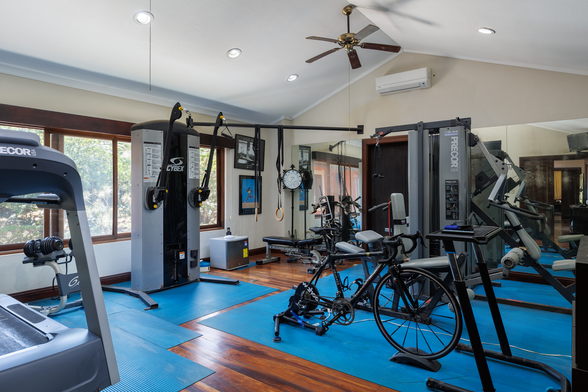 The primary suite offers privacy and serenity, with its own sitting area, large walk-in closet, and spa-inspired bathroom. An adjacent home office, custom-built with extensive shelving and natural light, offers an inspiring workspace suited to modern lifestyles. Next to this, a well-equipped gym provides a bright and airy space ideal for wellness and daily exercise, allowing residents to maintain a healthy lifestyle in the comfort of their own home.