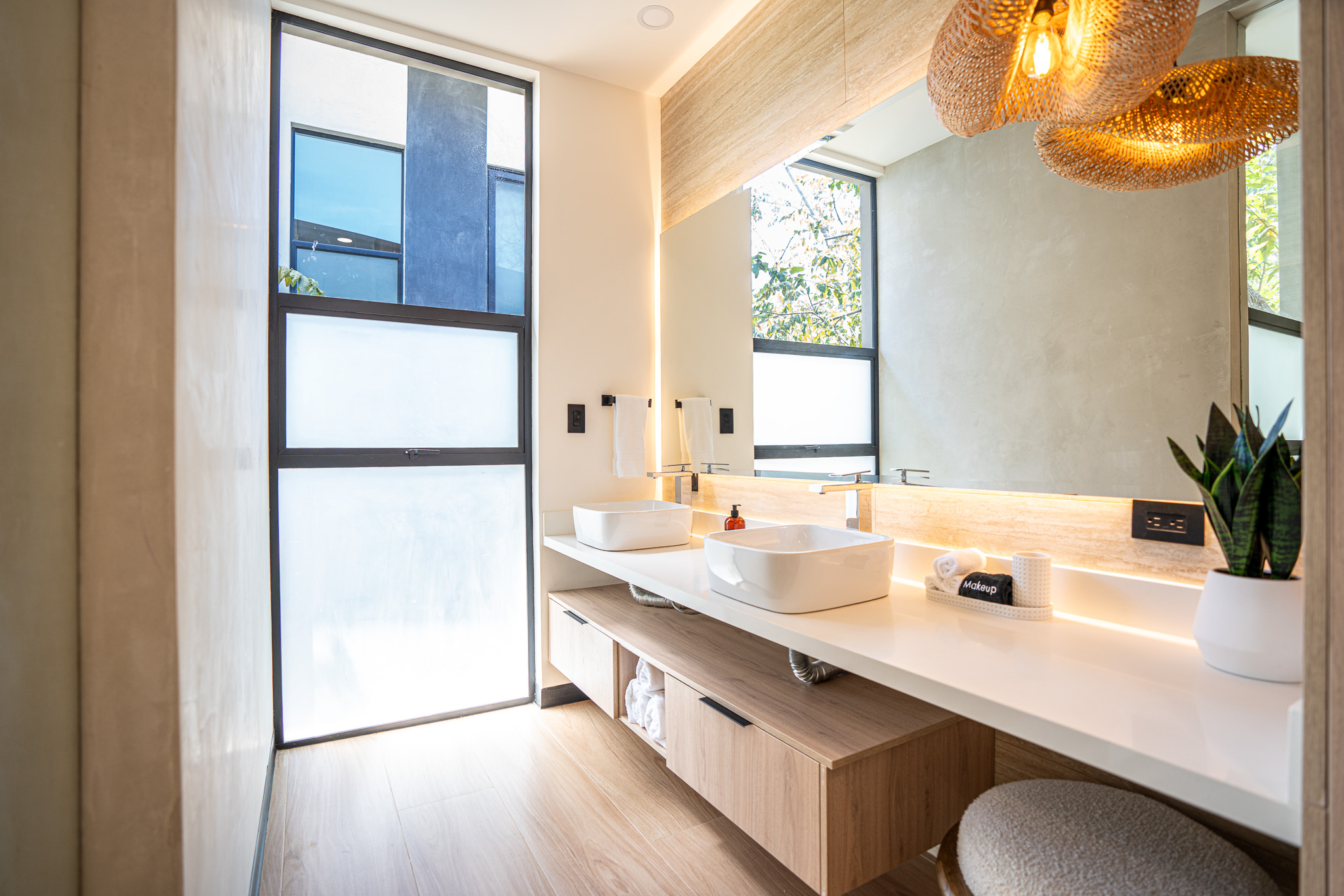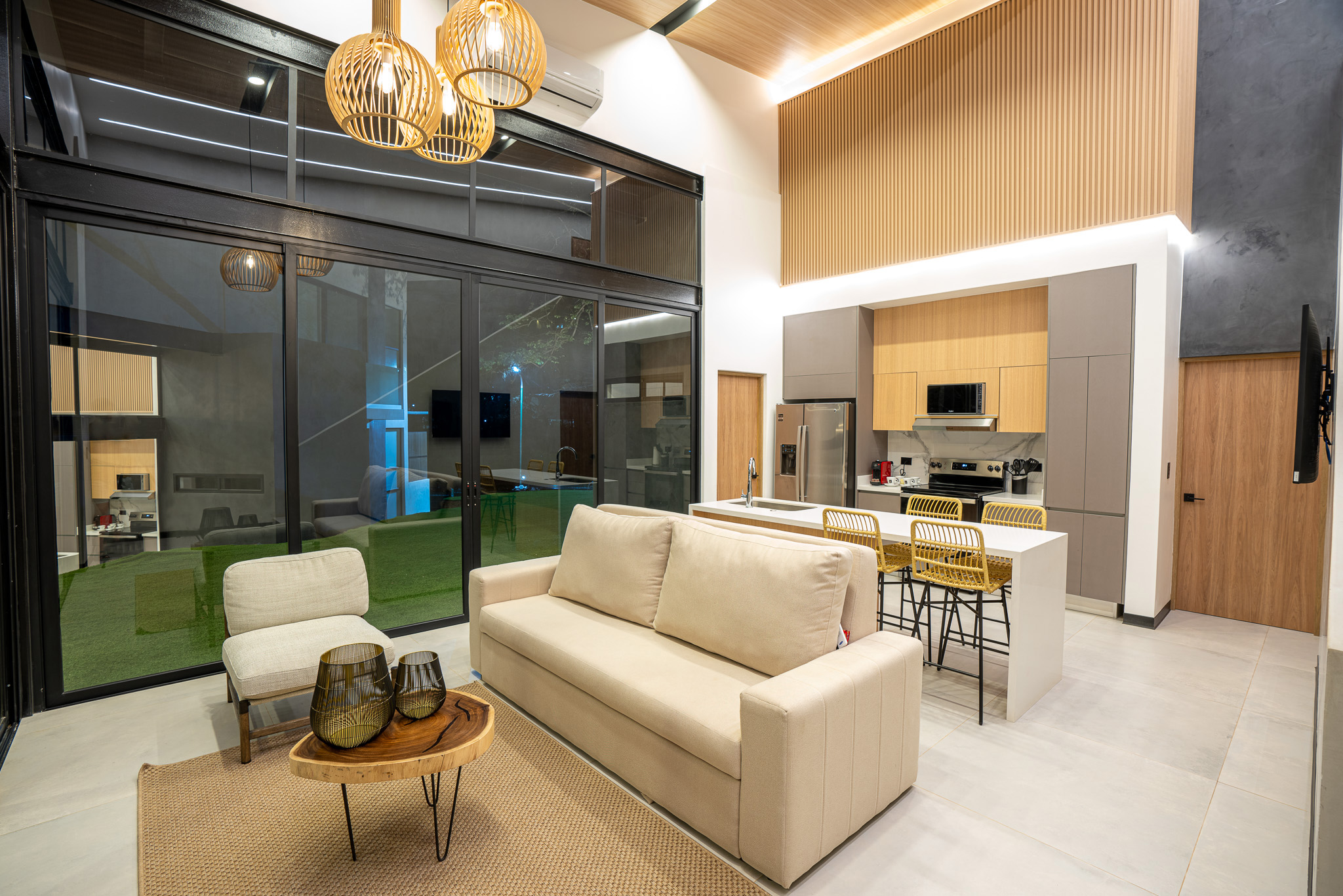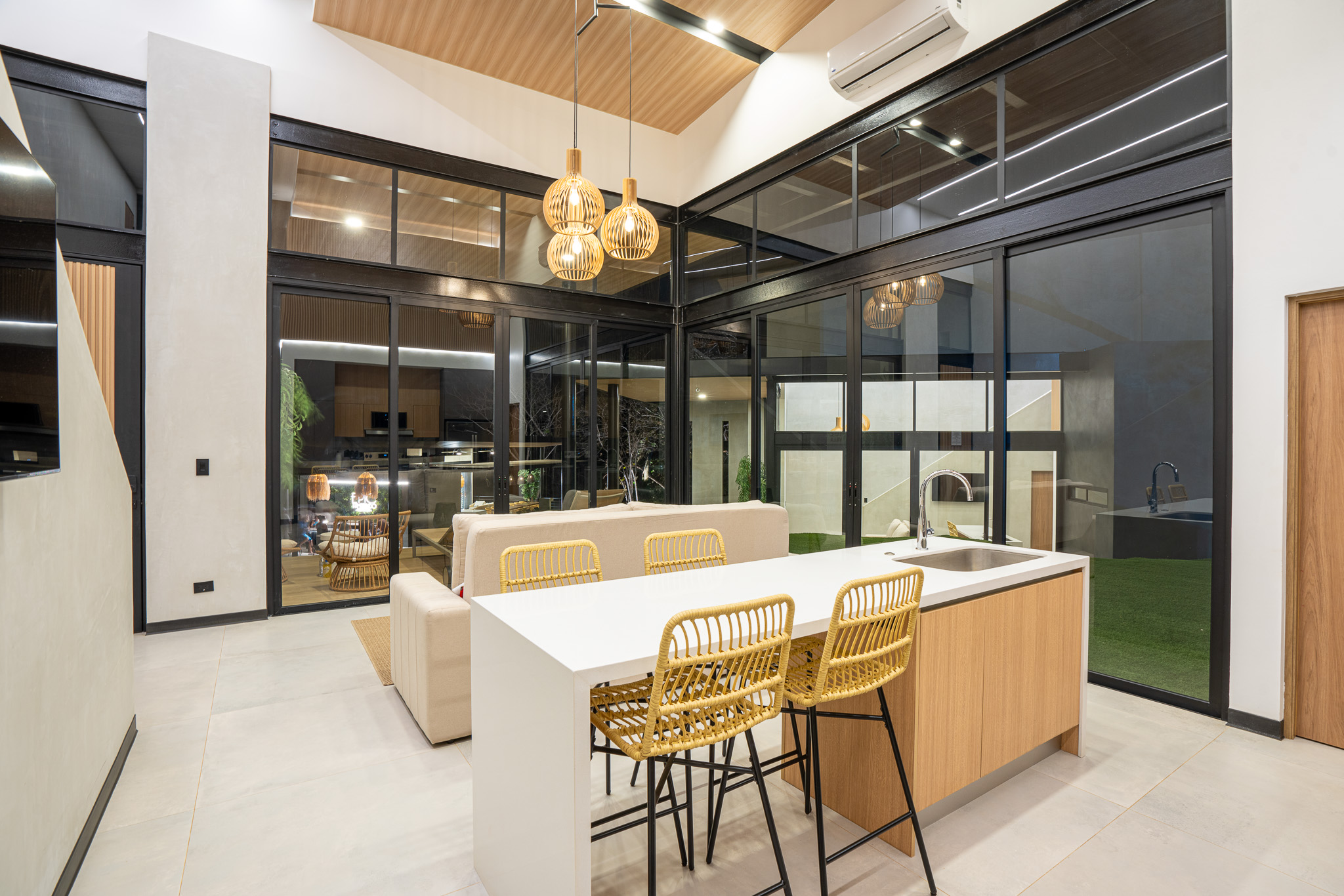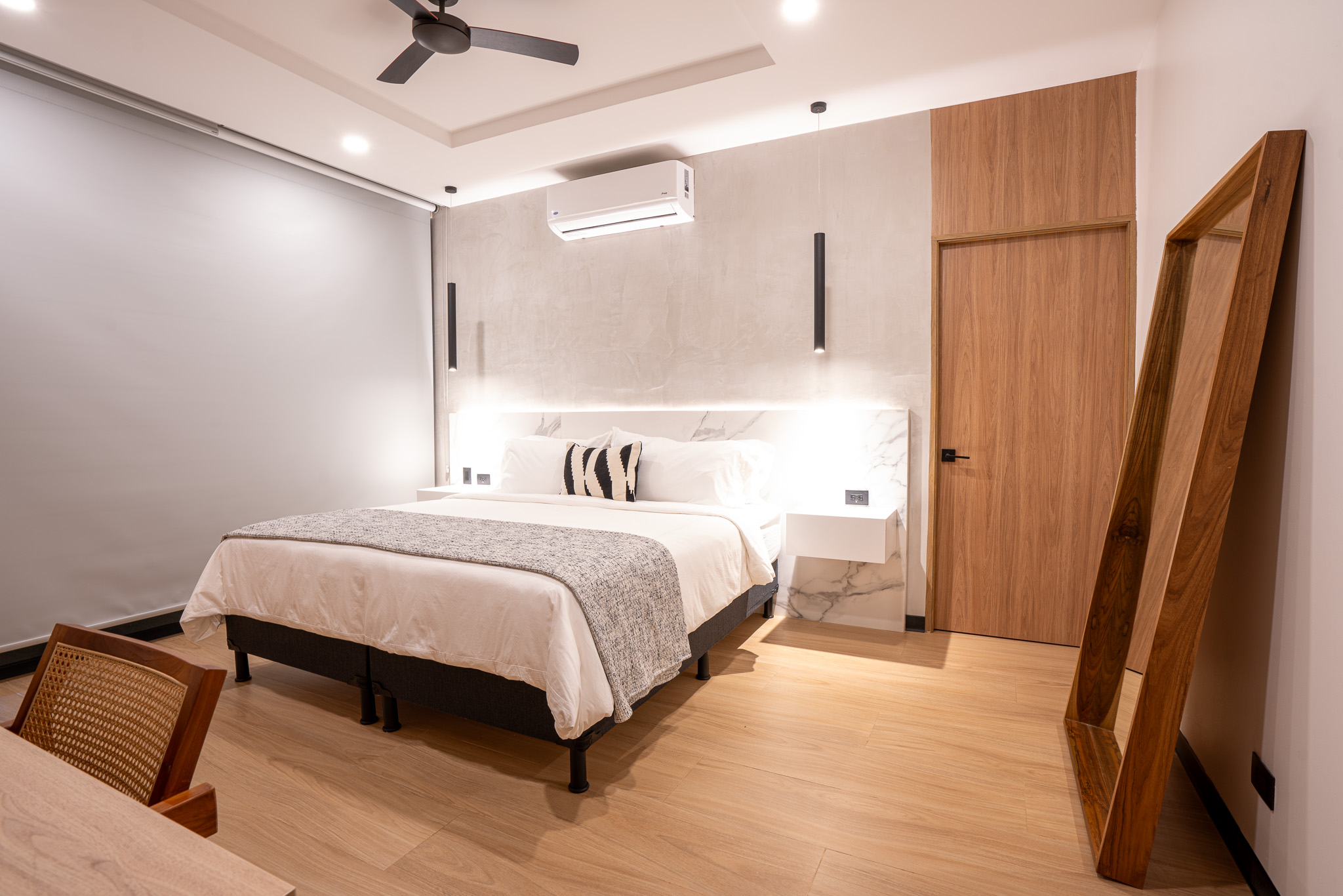Every space has been thoughtfully designed with premium appliances, motorized blackout curtains, independent water and filtration systems, and an energy-efficient electrical design. A 400 Mbps fiber-optic internet connection ensures superior connectivity, while a security system with 19 cameras and a guarded entrance provides peace of mind.