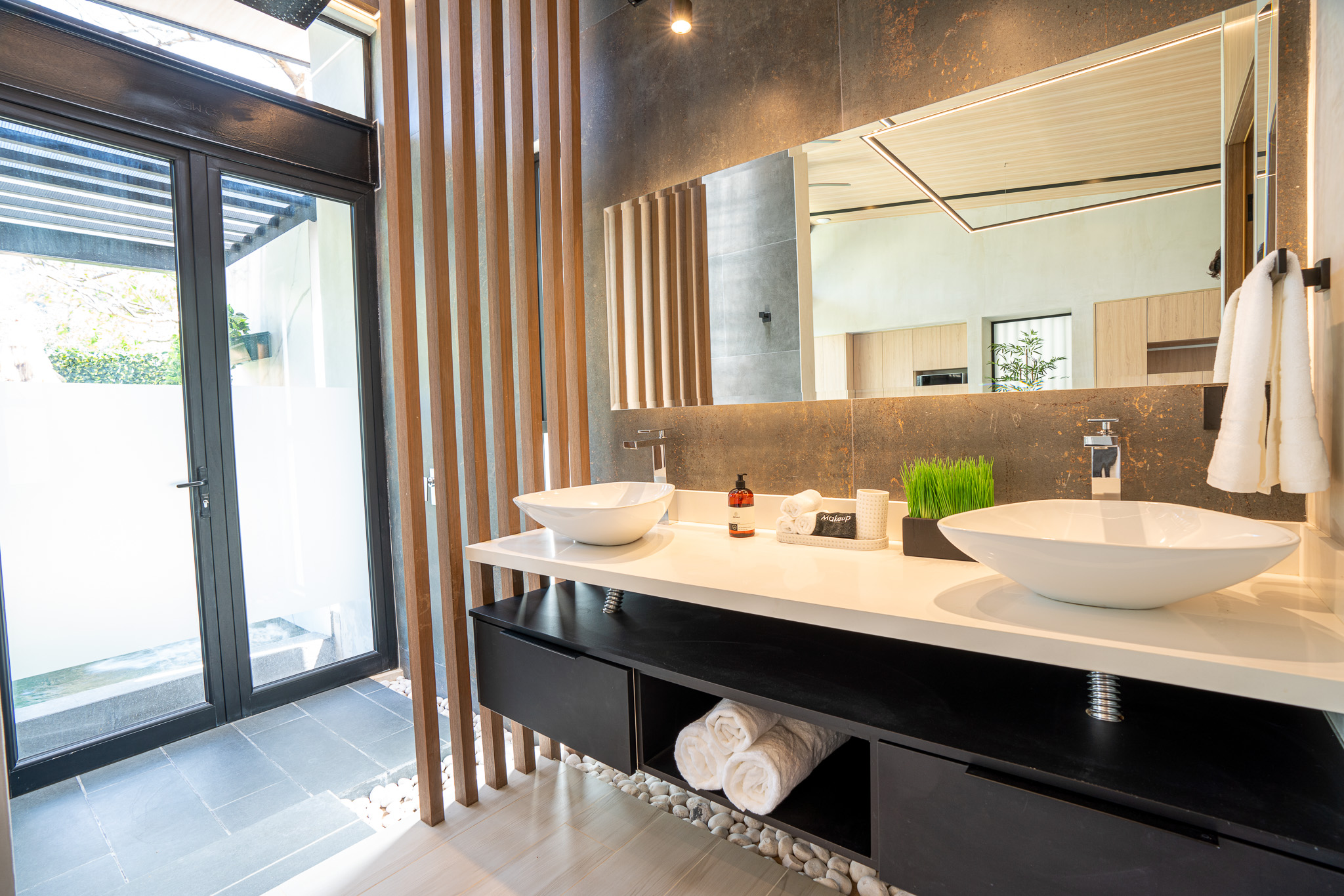 The complex includes six Grand Family Villas and six adults-only private suites, offering a truly exclusive lodging experience. The Grand Villas are spread over two levels and feature two bedrooms, 2.5 bathrooms, a laundry area, and the option to connect between units. The private suites offer enhanced seclusion with plunge pools, rainfall showers, and high-end finishes.