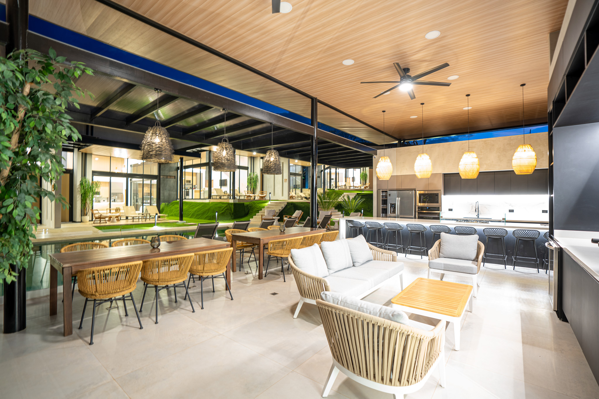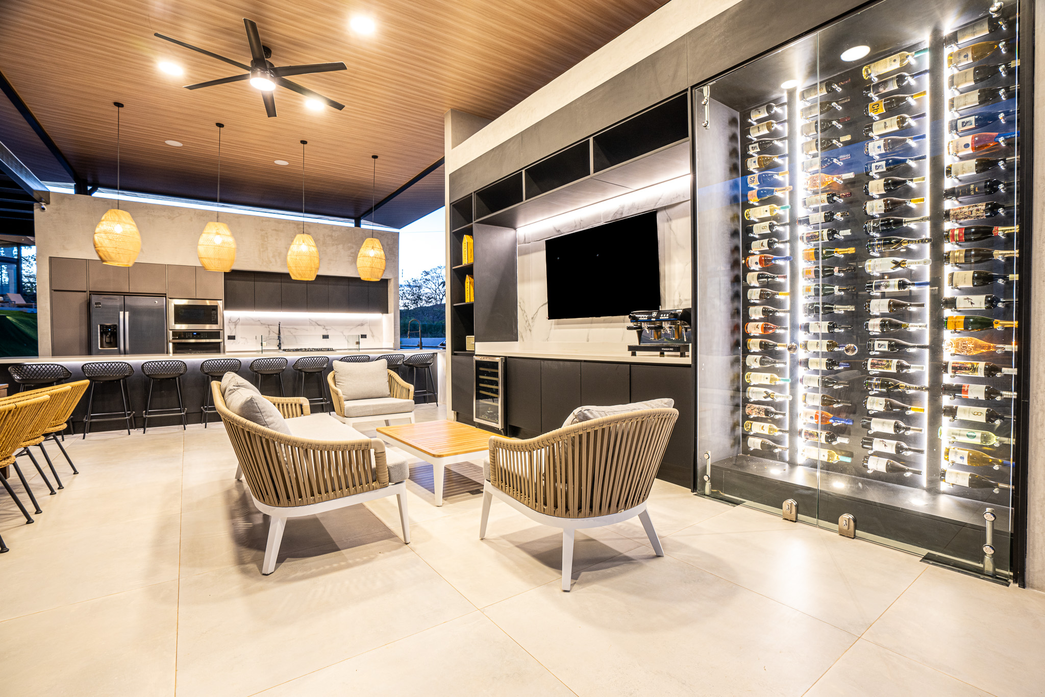 Clubhouse with a gourmet kitchen, wine cellar, and 70' Smart TV