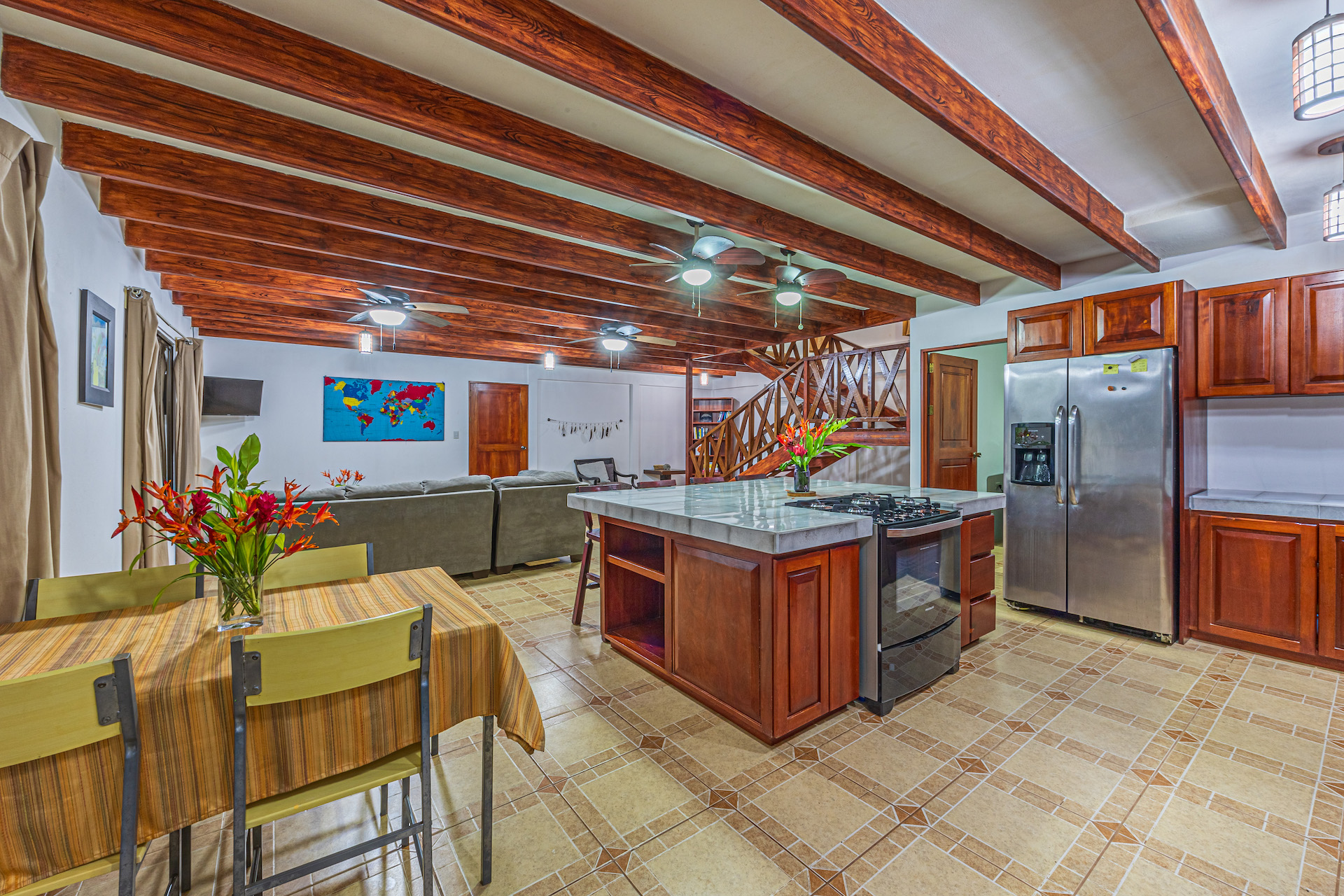 - A 3,143 sq ft main house with large kitchen, 3 bedrooms, and covered roof top with additional living and dining space.