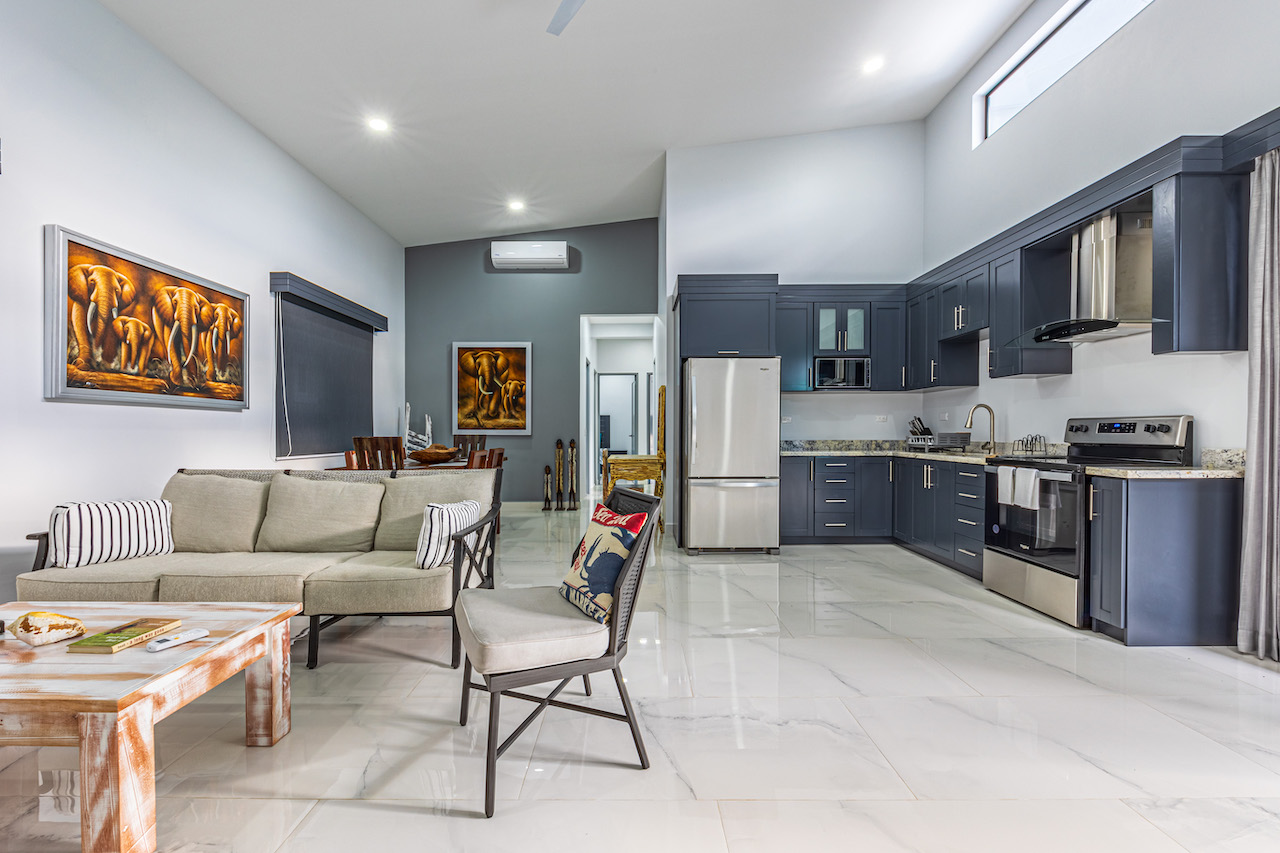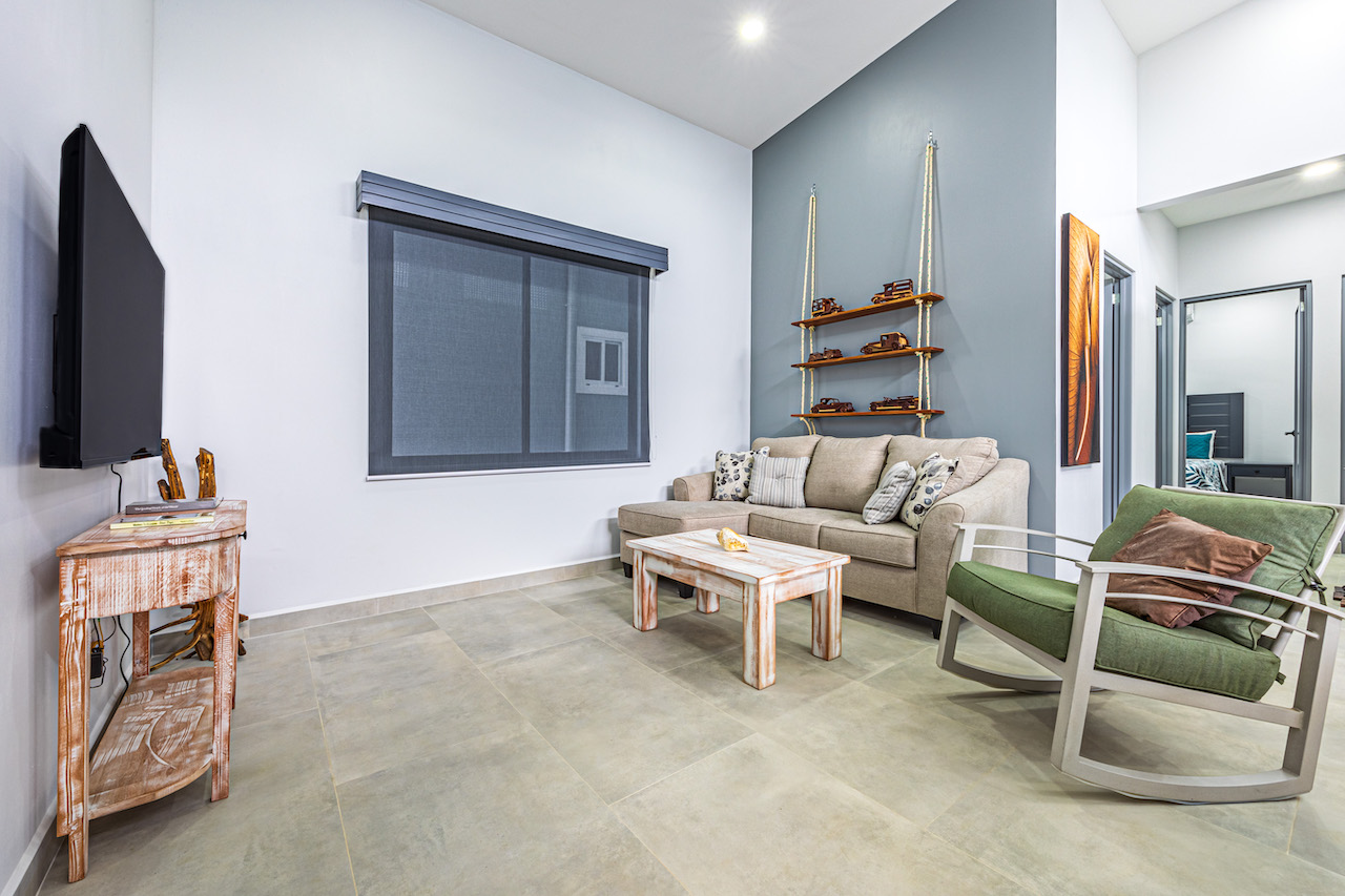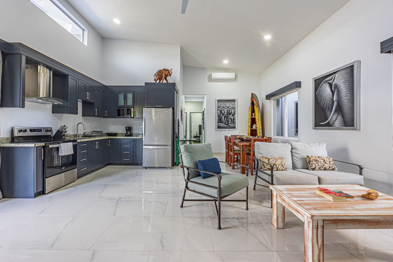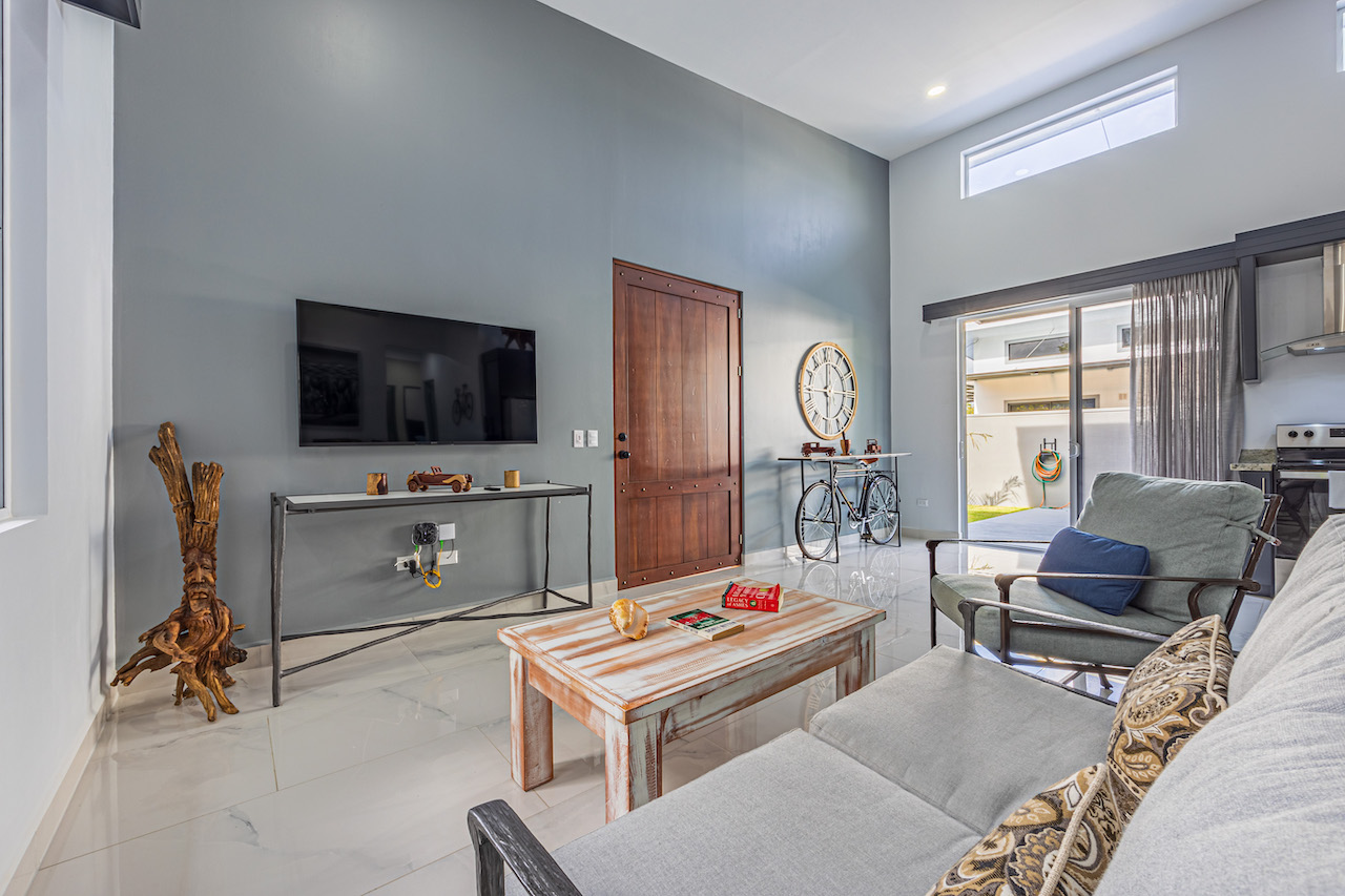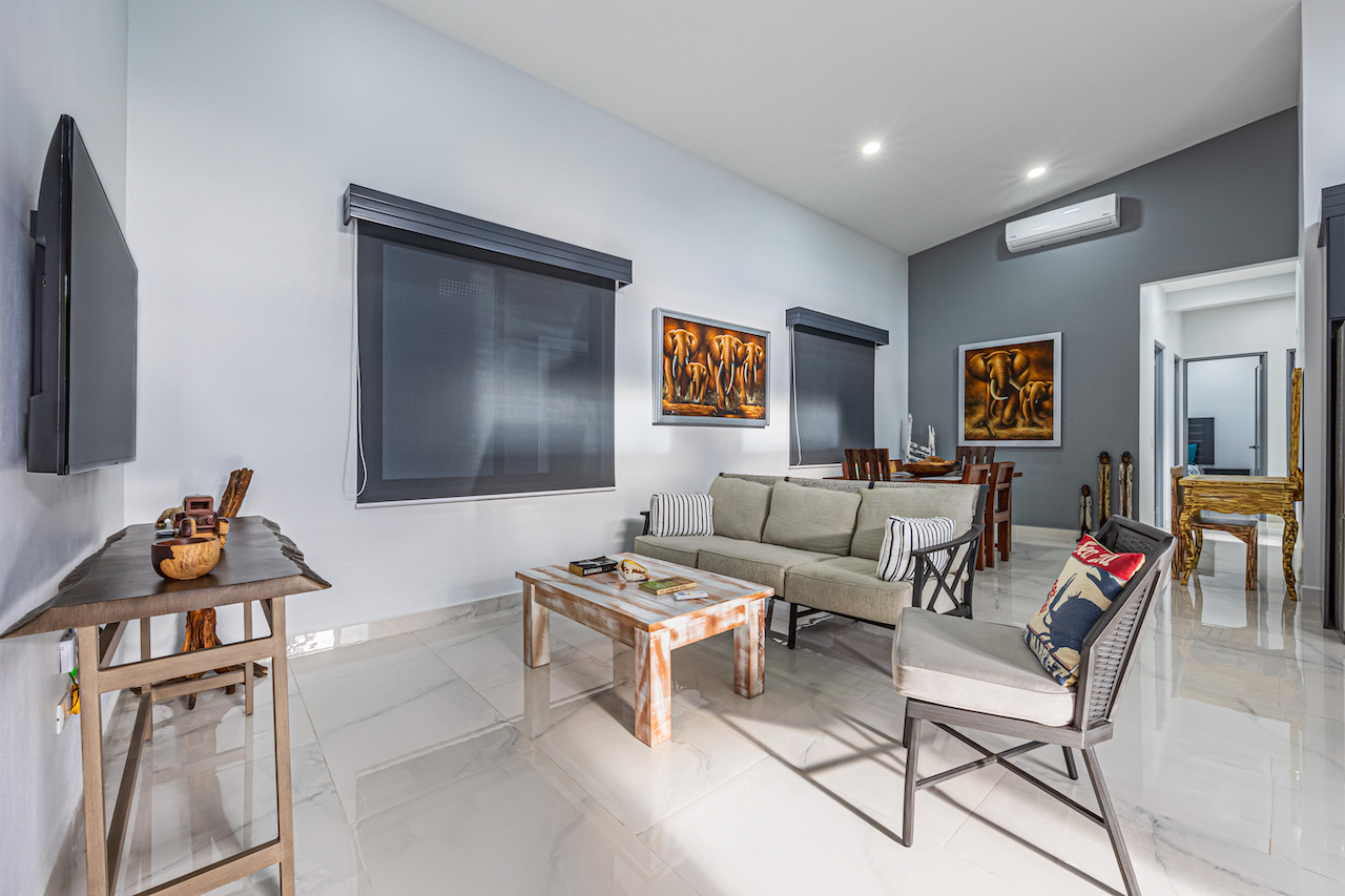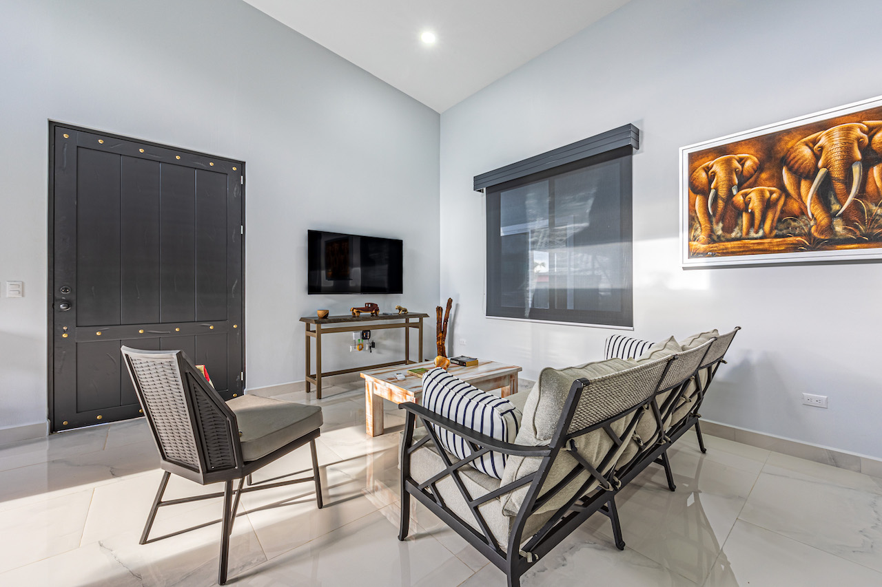 Step inside and feel the gentle embrace of vaulted ceilings that allow the soft caress of natural light to brighten up every room. The ambience is refreshing and bright, offering a sense of tranquility amidst the vibrant surroundings. Modern finishes with wooden tropical accents create a warm and inviting atmosphere, reminding you that you are indeed in a paradise embraced by nature.