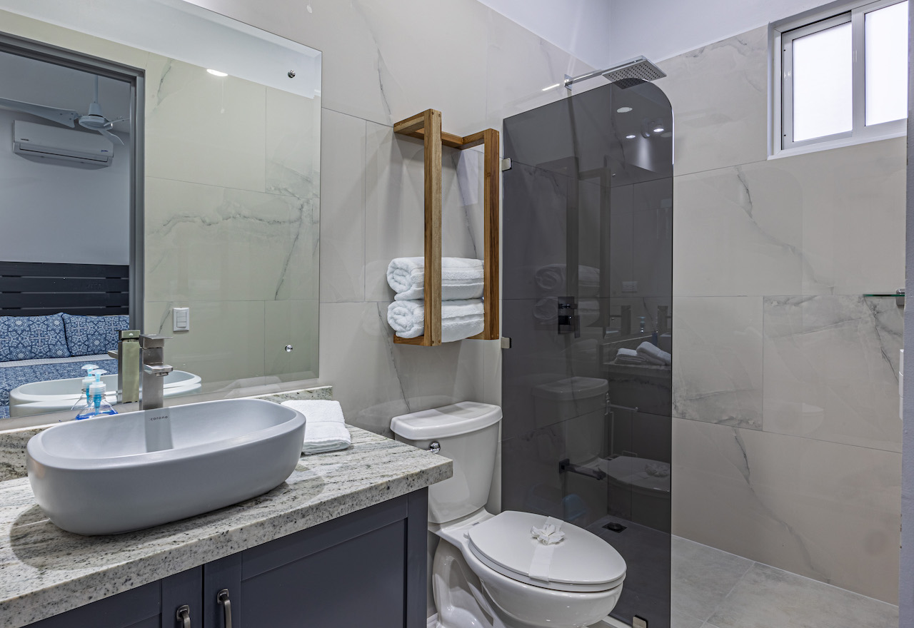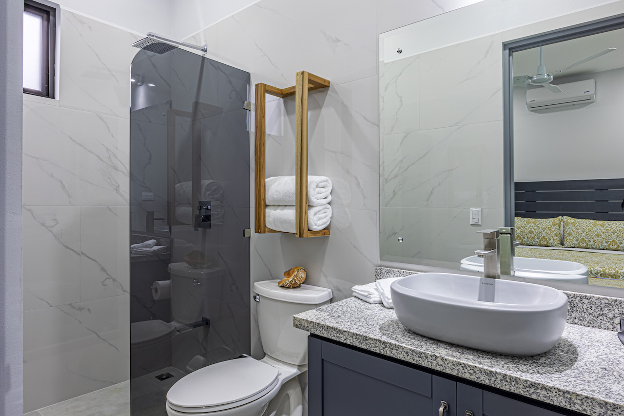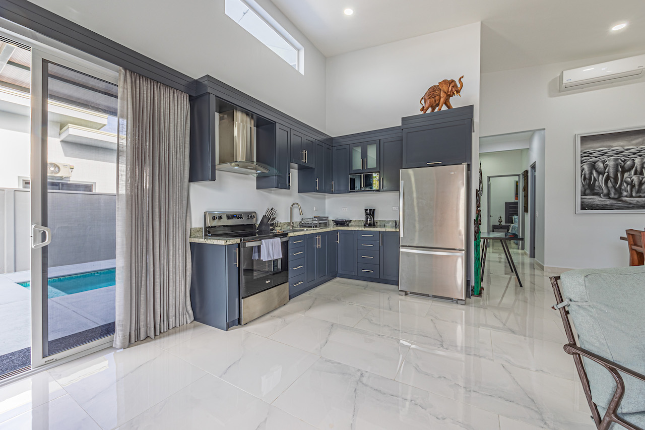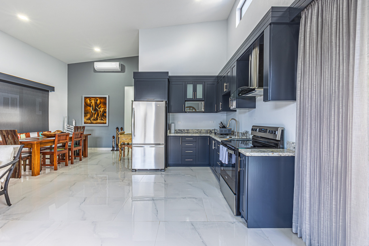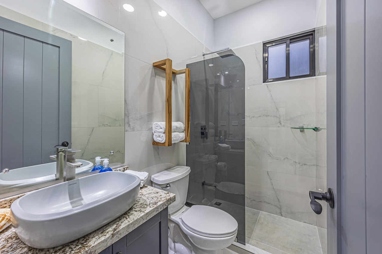 Step inside and feel the gentle embrace of vaulted ceilings that allow the soft caress of natural light to brighten up every room. The ambience is refreshing and bright, offering a sense of tranquility amidst the vibrant surroundings. Modern finishes with wooden tropical accents create a warm and inviting atmosphere, reminding you that you are indeed in a paradise embraced by nature.