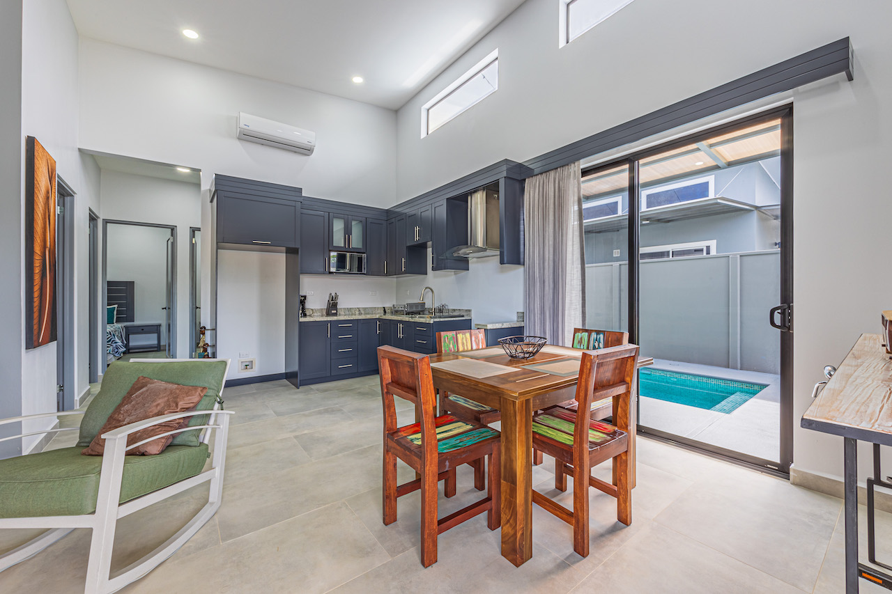 Outside, each of the eight homes are equipped with their own private pool which beckons the guests to unwind and embrace the gentle rhythm of Costa Rica. After a day of exploration and adventure, the pool becomes a sanctuary, reflecting the hues and the sounds of the lush greenery around.
