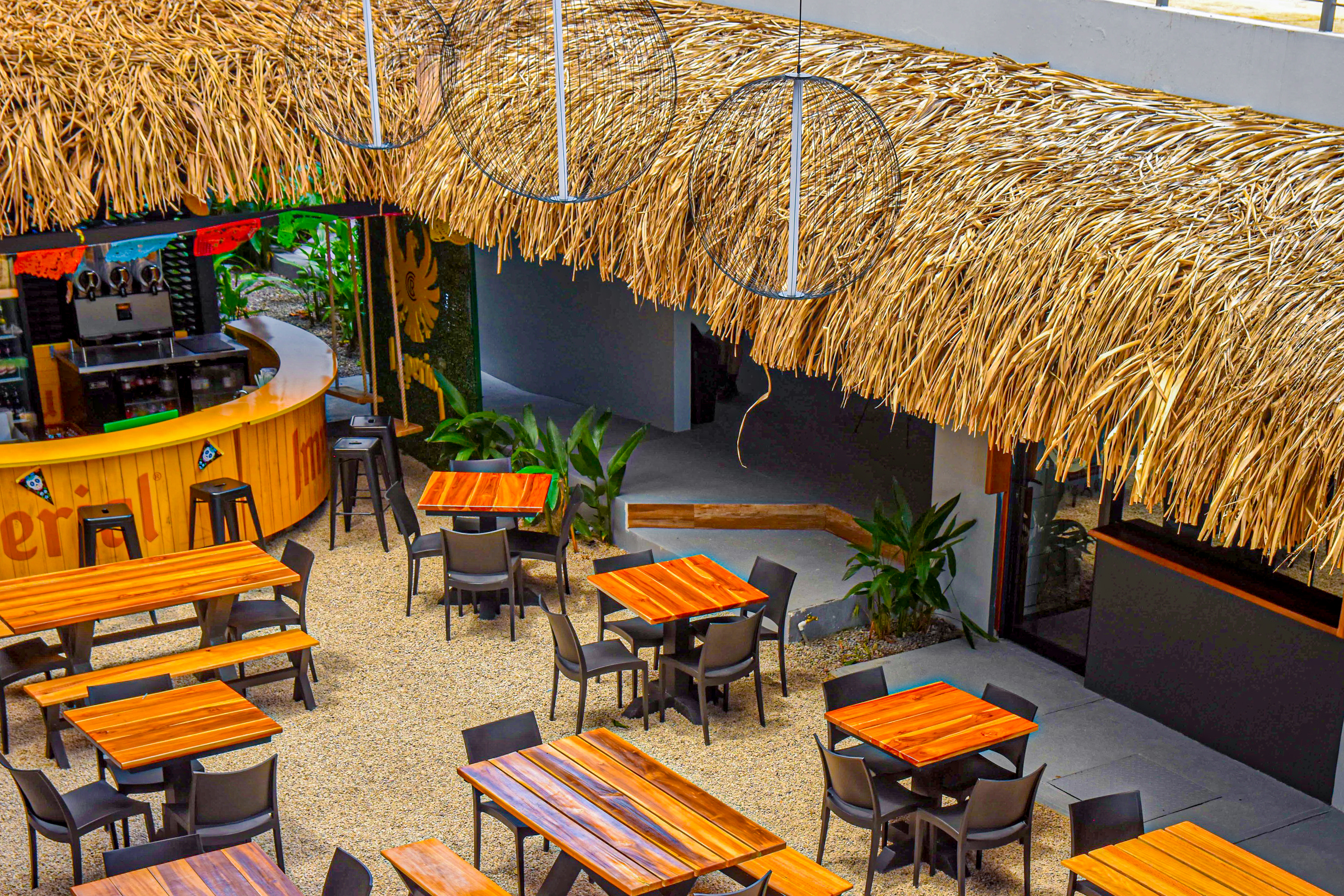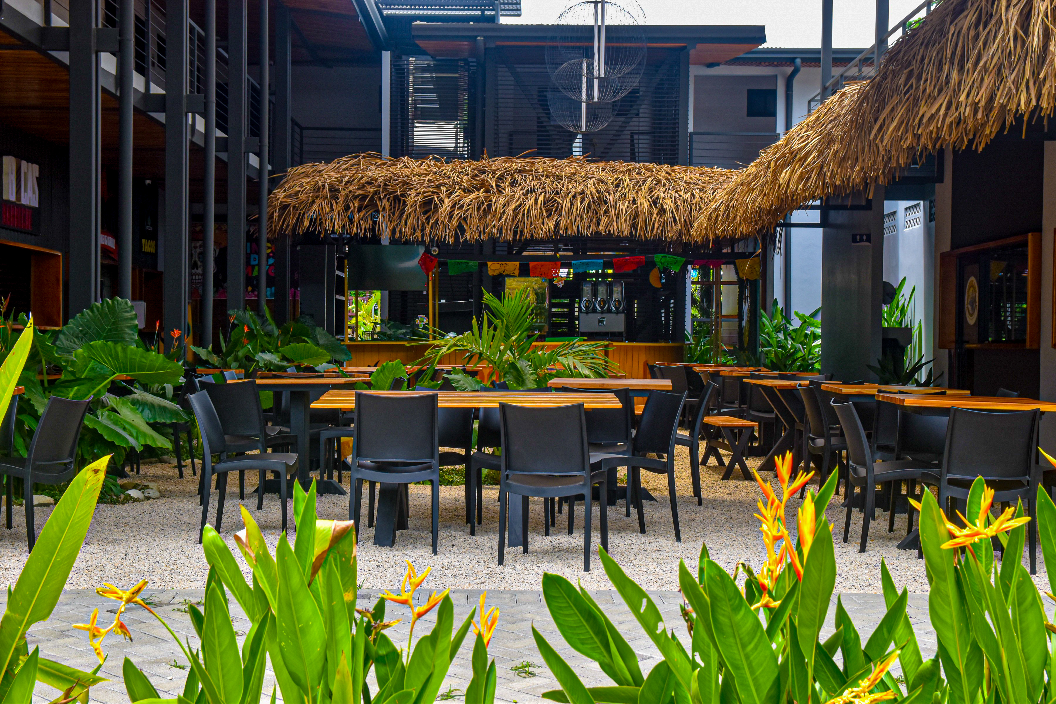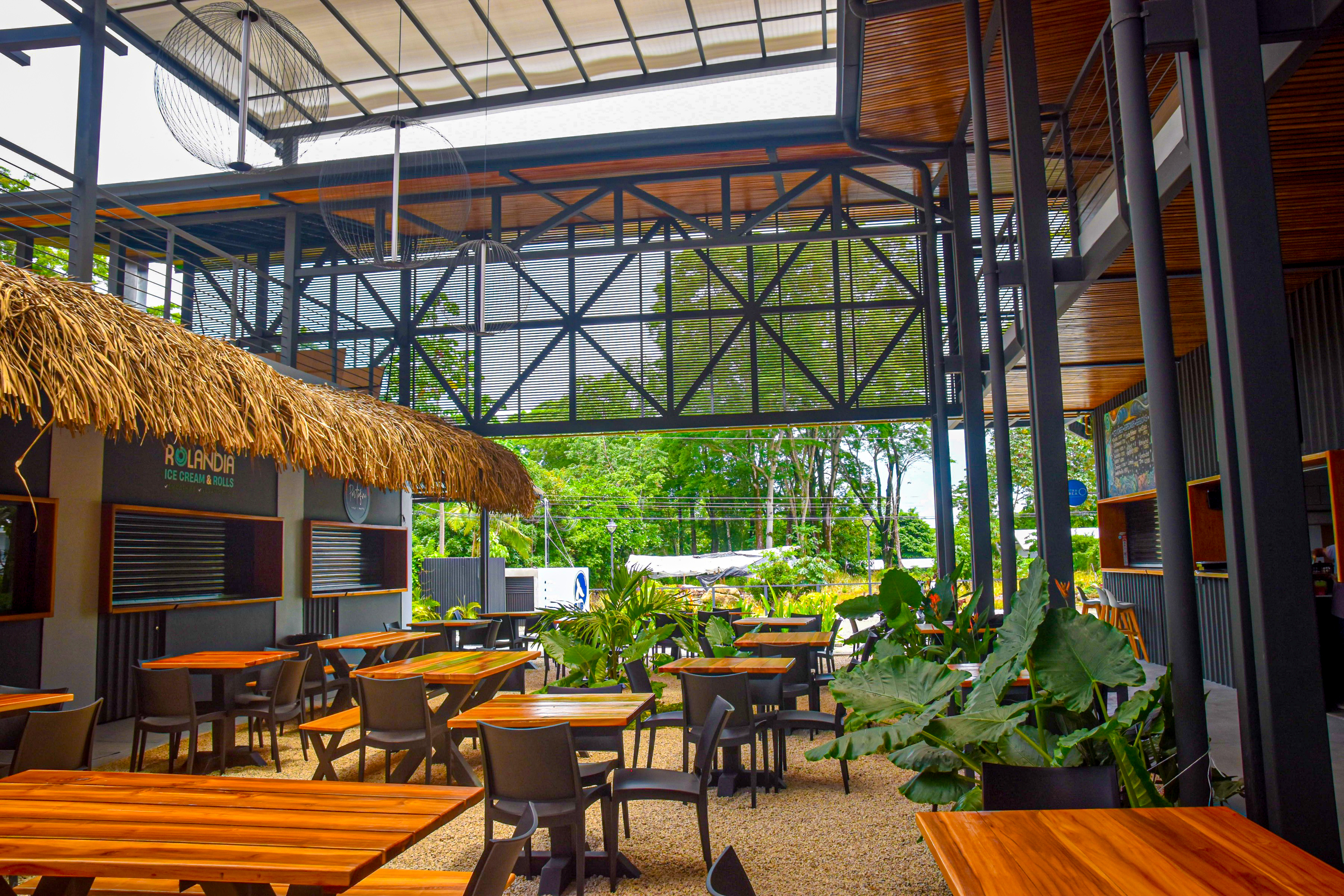 The ground floor is a gastronomic haven with eight diverse offerings: Contra Maria Chevicheria, Le Bistro, Samurai, Books BBQ, Brunch, Tacos, Ice Cream & Rolls, and the Italian place Portofino, complete with the Imperial Bar. This vibrant area, central to the structure, has seating for over 100 guests and is complemented by a sanitary block of eight toilets. Also located on the ground floor is Monkey Ride, an office providing ground transfers throughout Costa Rica.
