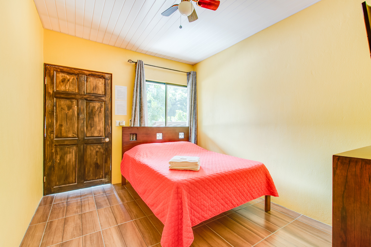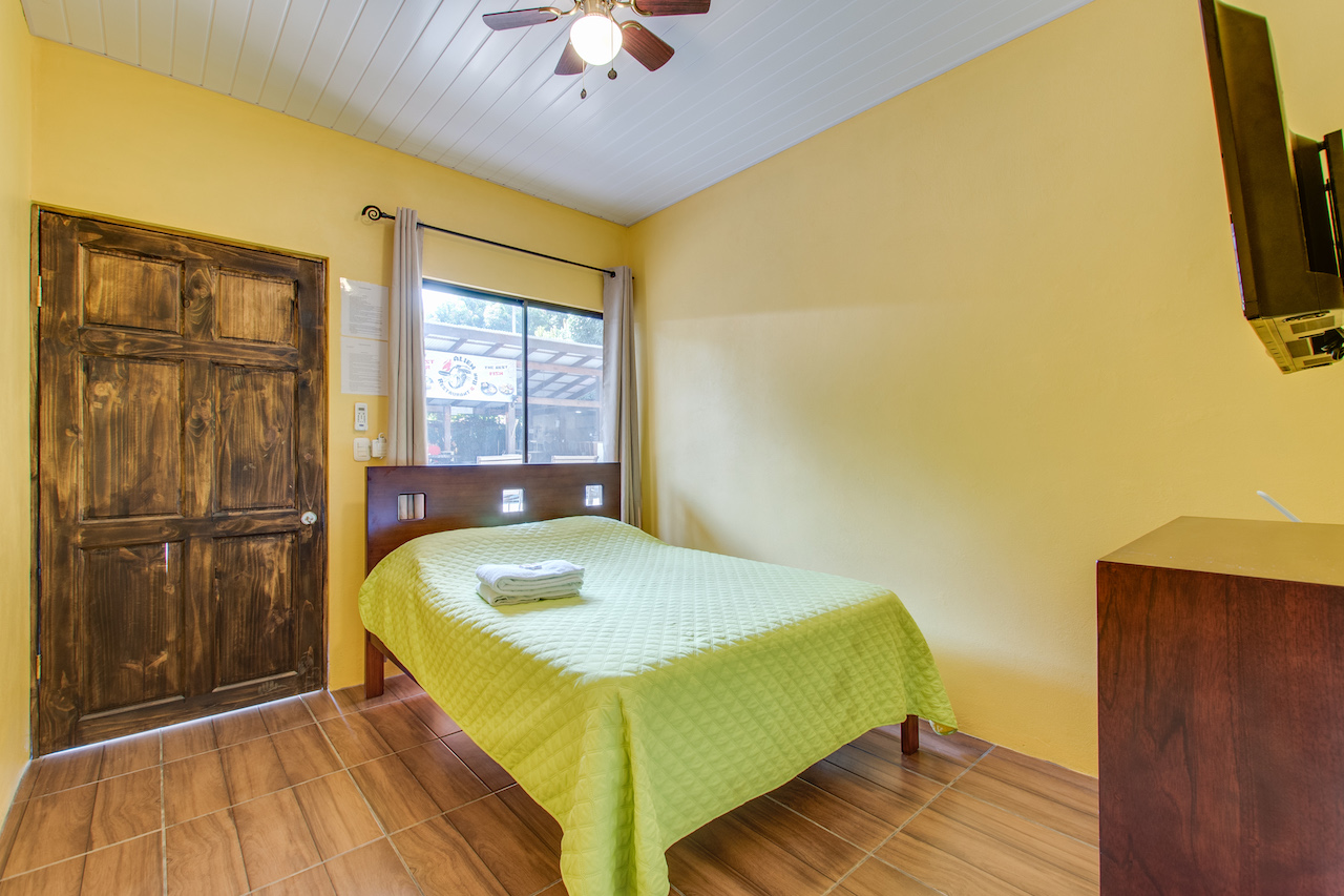 The hotel holds eight double-occupancy rooms of 15 m2. Each room is air-conditioned, contains a private bathroom / shower, and is furnished with a tween-sized bed, TV, night-table, ceiling fan and shelving. The rooms are bright, beautifully decorated with tropical motifs, and offer a view of the pool and surrounding greenery. Towels and linen are provided.