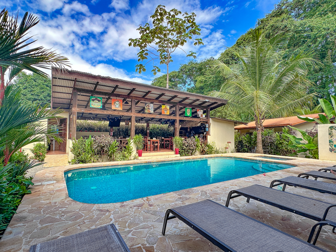 Located a 5-minute walk away from the entrance to the stunning Marino Ballena National Park and the beautiful Playa Uvita, the Tropical Beach Hotel / Restaurant / Bar is an exclusive all-in-one resort in the red-hot tourist town of Uvita famous for its tropical beaches, surfing, eco and adventure tourism, whale watching, sport fishing, the stunning 'whale's tail' sand and rock formation, annual 'Envision' music & lifestyle festival, and the multitude of dining and shopping options peppered in every direction.